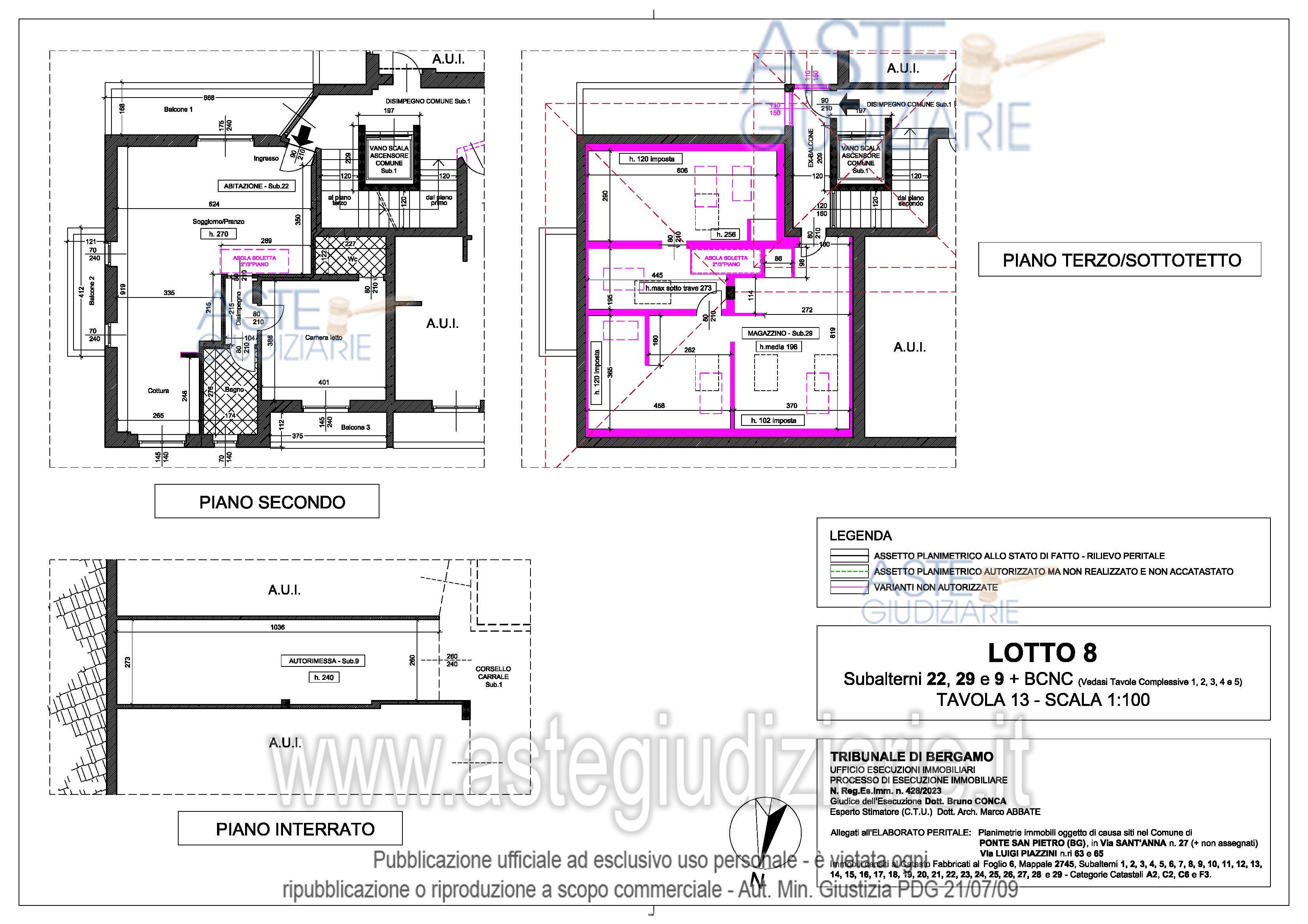 Vendita all'asta Senza incanto, con gara telematica asincrona - LOTTO 8: Appartamento sito al secondo piano composto da soggiorno/cucina, disimpegno, camera con locale WC, un bagno e tre balconi. Magazzino (locale sottotetto non abitabile) sito al piano terzo piano sottotetto. ) Autorimessa sita al piano interrato. Prezzo base € 147.839,98 (offerta minima € 110.879,98). Data inizio operazioni di vendita: 10/12/2025 ore 15:00. Professionista delegato alla vendita Avv. Simone Minola - Email "simoneminola@virgilio.it"; Tel. 0350779384. Custode Giudiziario Avv. Simone Minola - Email "simoneminola@virgilio.it"; Tel. 0350779384. Rif. Tribunale di Bergamo - Espropriazione immobiliare (cartabia) n. 428/2023