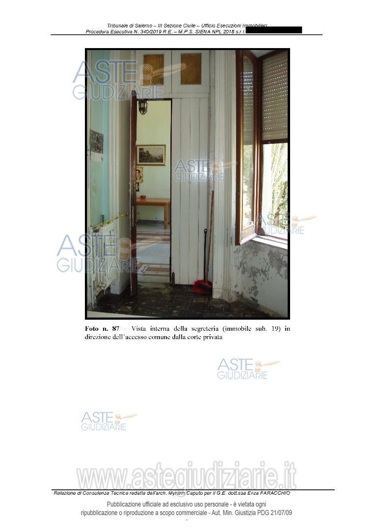 Vendita all'asta Senza incanto, con gara telematica asincrona - LOTTO 5: Quota 1/1– immobile ubicato al piano rialzato di un fabbricato risalente al primo trentennio del 1900 avente destinazione civile; l’accesso avviene sia dal marciapiede di via Mario Antonio Alfani al n. civico 4 e sia da una corte privata di altra proprietà accessibile sempre da via Mario Antonio Alfani civico n. 8 del Comune di Pontecagnano Faiano (SA). Prezzo base € 109.000,00 (offerta minima € 81.750,00). Data inizio operazioni di vendita: 27/01/2026 ore 12:00. Giudice Enza Faracchio. Professionista delegato alla vendita Avv. Febronia Pichilli. Custode Giudiziario Avv. Febronia Pichilli - Email "avvmoniapichilli@gmail.com"; Cell. 3342212244; Tel. 089-3180076. Rif. Tribunale di Salerno - Esecuzione immobiliare post legge 80 n. 340/2019