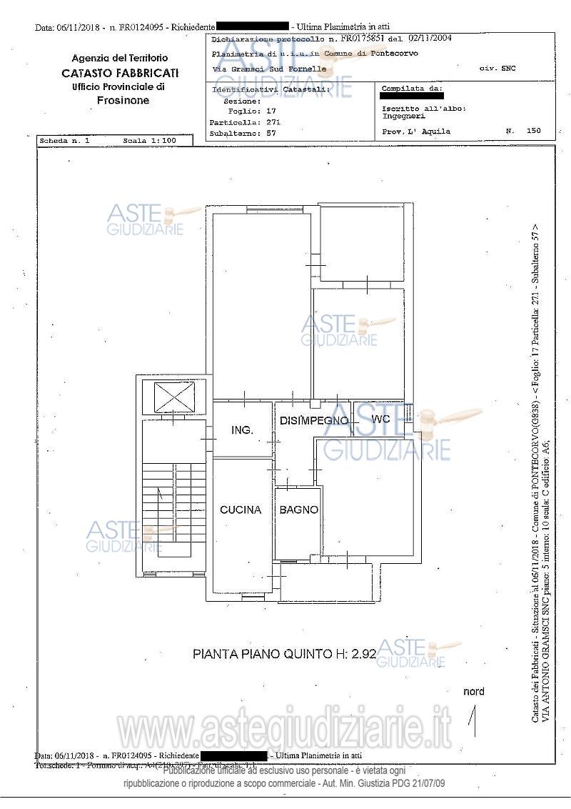 Vendita all'asta Senza incanto, con gara telematica asincrona - LOTTO UNICO: Appartamento ubicato a Pontecorvo (FR) - Via A. Gramsci, n. 12, località Fornelle - Edificio A/6, scala C, interno 10, piano 5. L' unità immobiliare è parte di un complesso residenziale di tre palazzine, con area a parcheggio. Identificato al catasto Fabbricati - Fg. 17, Part. 271, Sub. 57, Zc. 1, Categoria A2 Superficie 115,40 mq . Prezzo base € 15.892,48 (offerta minima € 11.919,36). Data inizio operazioni di vendita: 07/07/2026 ore 10:00. Professionista delegato alla vendita Avv. Paola Alfei - Email "Paolaalfei@libero.it"; Tel. 3388883905. Custode Giudiziario Avv. Paola Alfei - Email "Paolaalfei@libero.it"; Tel. 3388883905. Rif. Tribunale di Cassino - Esecuzione immobiliare post legge 80 n. 133/2018