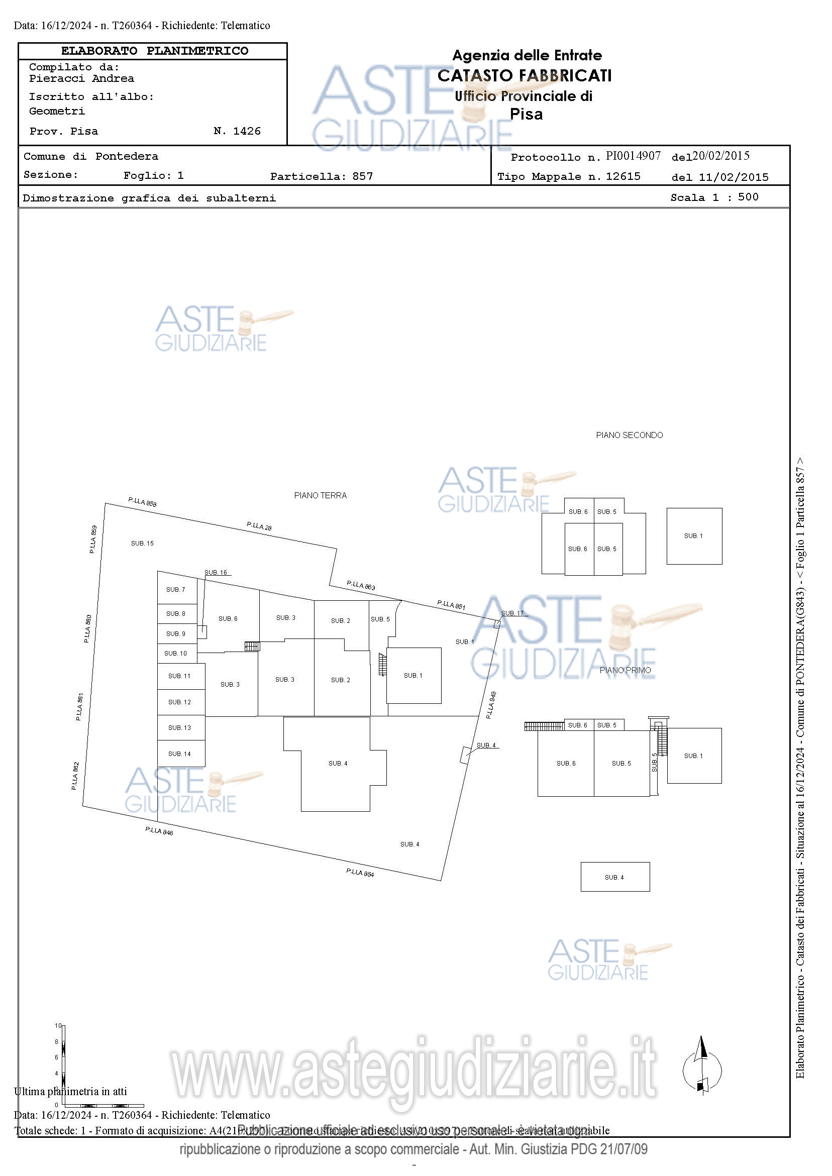 Vendita all'asta Senza incanto, con gara telematica asincrona - LOTTO UNICO: In Pontedera, via del Chiesino (già via di Camone) numero civico 83, piena proprietà di unità immobiliare per civile abitazione, facente parte della porzione sud di un più ampio fabbricato (che si eleva in parte su due piani e in parte su tre piani fuori terra, costituito nel complesso da sei alloggi tutti con ingresso indipendente da resede esclusivo oltre a quattro garage e quattro posti auto scoperti realizzati sul lato ovest). Prezzo base € 336.120,00 (offerta minima € 252.090,00). Data inizio operazioni di vendita: 15/04/2026 ore 09:30. Giudice Laura Pastacaldi. Professionista delegato alla vendita Not. Jessica Dal Canto. Custode Giudiziario Cosimo Erriquez - Email "prenotazionipisa@astagiudiziaria.com". Rif. Tribunale di Pisa - Espropriazione immobiliare (cartabia) n. 147/2024
