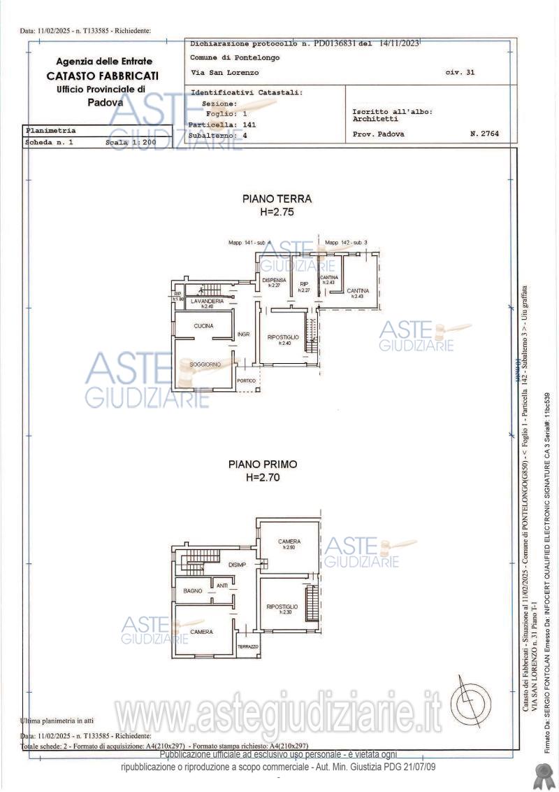 Vendita all'asta Senza incanto, con gara telematica sincrona - LOTTO UNICO: Lotto Unico - piena proprietà di porzione di fabbricato sita in Comune di Pontelongo (PD), località San Lorenzo, via San Lorenzo n. 1544/E e precisamente trattasi dell'abitazione sul lato ovest, in fase di ristrutturazione, disposta ai piani terra e primo con area coperta e scoperta esclusiva di pertinenza per una superficie commerciale complessiva di mq. 260. Occupato dal debitore. Prezzo base € 42.000,00 (offerta minima € 31.500,00). Data vendita 26/02/2026 ore 15:45. Giudice Amenduni. Professionista delegato alla vendita Dott. Andrea Fontana - Email "visiteimmobili@fsst.it"; Tel. 0498762588. Custode Giudiziario Dott. Andrea Fontana - Email "visiteimmobili@fsst.it"; Tel. 0498762588. Rif. Tribunale di Padova - Espropriazione immobiliare (cartabia) n. 377/2024