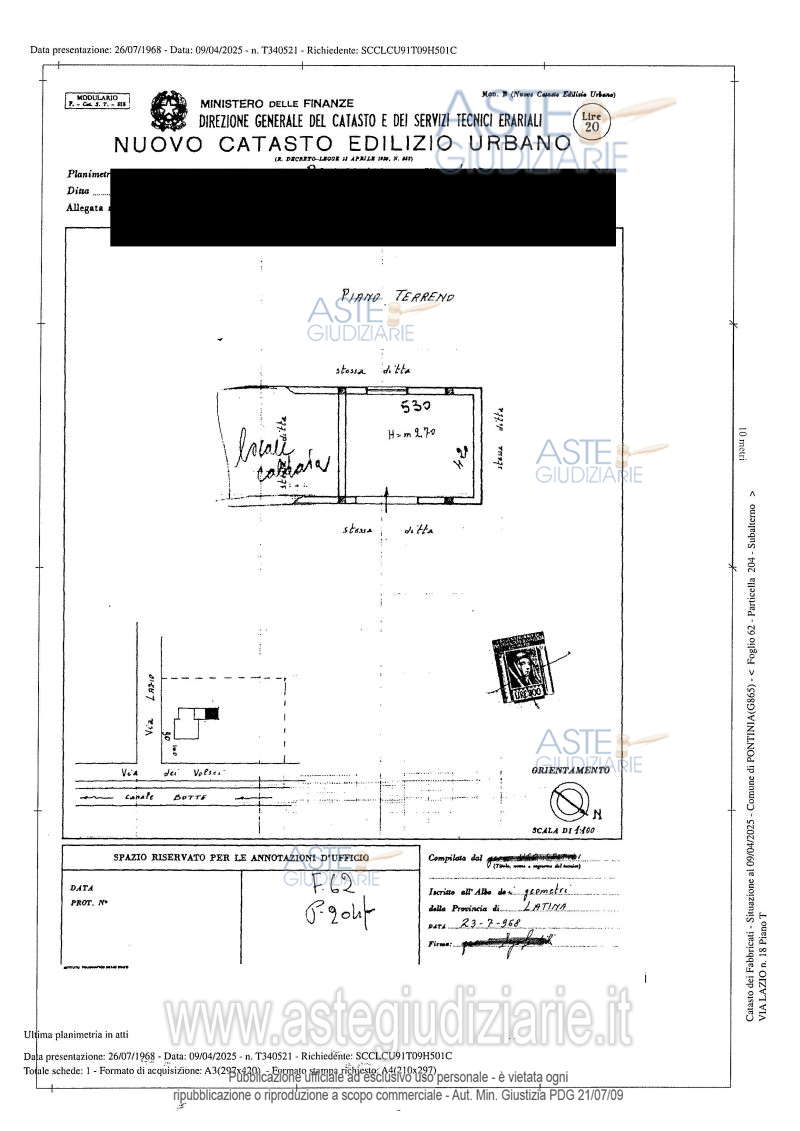 Vendita all'asta Senza incanto, con gara telematica asincrona - LOTTO UNICO: appartamento ubicato in Pontinia, Via dei Volsci, con annesso terreno di corte pertinenziale e garage . Prezzo base € 106.584,00 (offerta minima € 79.938,00). Data inizio operazioni di vendita: 27/01/2026 ore 15:00. Professionista delegato alla vendita Avv. Erminio Caringi - Email "erminio.caringi@libero.it"; Cell. 3201863248. Custode Giudiziario Avv. Erminio Caringi - Email "erminio.caringi@libero.it"; Cell. 3201863248. Rif. Tribunale di Latina - Espropriazione immobiliare (cartabia) n. 82/2024