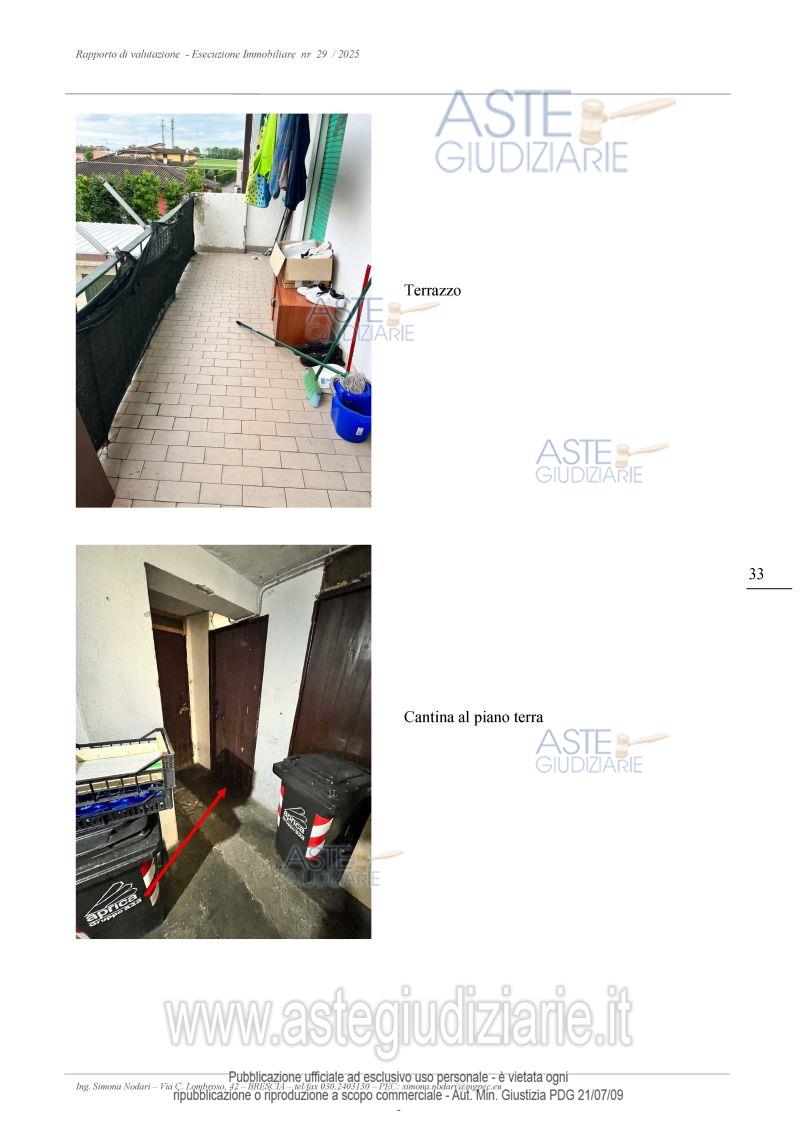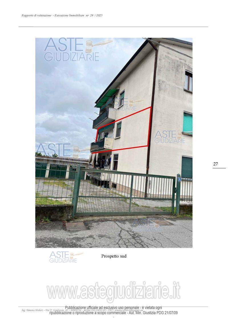 Vendita all'asta Senza incanto, con gara telematica asincrona - LOTTO UNICO: Piena proprietà: Appartamento trilocale al primo piano ammezzato con cantina, locale ripostiglio e autorimessa parte di condominio. Prezzo base € 54.895,00 (offerta minima € 41.171,25). Data inizio operazioni di vendita: 08/05/2026 ore 12:30. Professionista delegato alla vendita Avv. Giovanni Auditore - Email "auditorebriguglio@hotmail.it". Custode Giudiziario Avv. Giovanni Auditore - Email "auditorebriguglio@hotmail.it". Rif. Tribunale di Brescia - Espropriazione immobiliare (cartabia) n. 29/2025