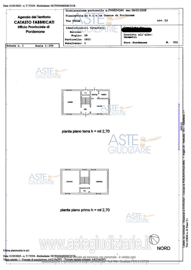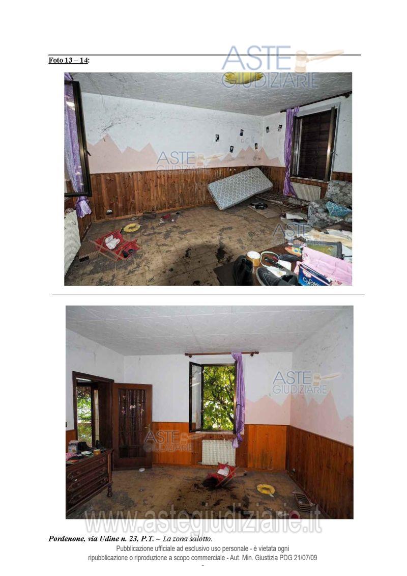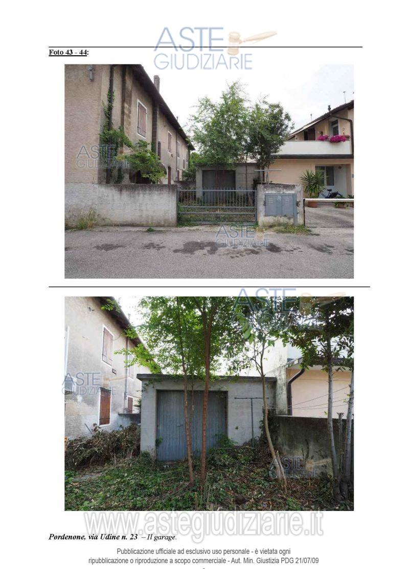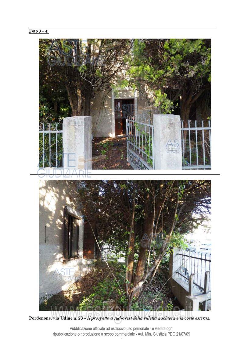 Vendita all'asta Senza incanto, con gara telematica sincrona - LOTTO UNICO: Villetta a schiera con autorimessa, composta da: una zona ingresso-scala, un vano salotto, un vano cucina, due camere, più accessori (un bagno, un disimpegno, un ripostiglio e una centrale termica) con annessa corte esclusiva. Al piano terra sono ubicati: una zona ingresso-scala, il salotto, il disimpegno, il bagno; al piano primo sono ubicati: due camere, il ripostiglio. Prezzo base € 103.000,00 (offerta minima € 77.250,00). Data vendita 28/01/2026 ore 16:00. Giudice Dott. Elisa Tesco. Professionista delegato alla vendita Not. Maurizio Ascanio - Email "esecuzioniimmobiliari@studionotaioascanio.it". Custode Giudiziario Custode Giudiziario - Email "custodi@associazionenotarile.pn.it"; Tel. 3294536349. Rif. Tribunale di Pordenone - Espropriazione immobiliare (cartabia) n. 78/2024