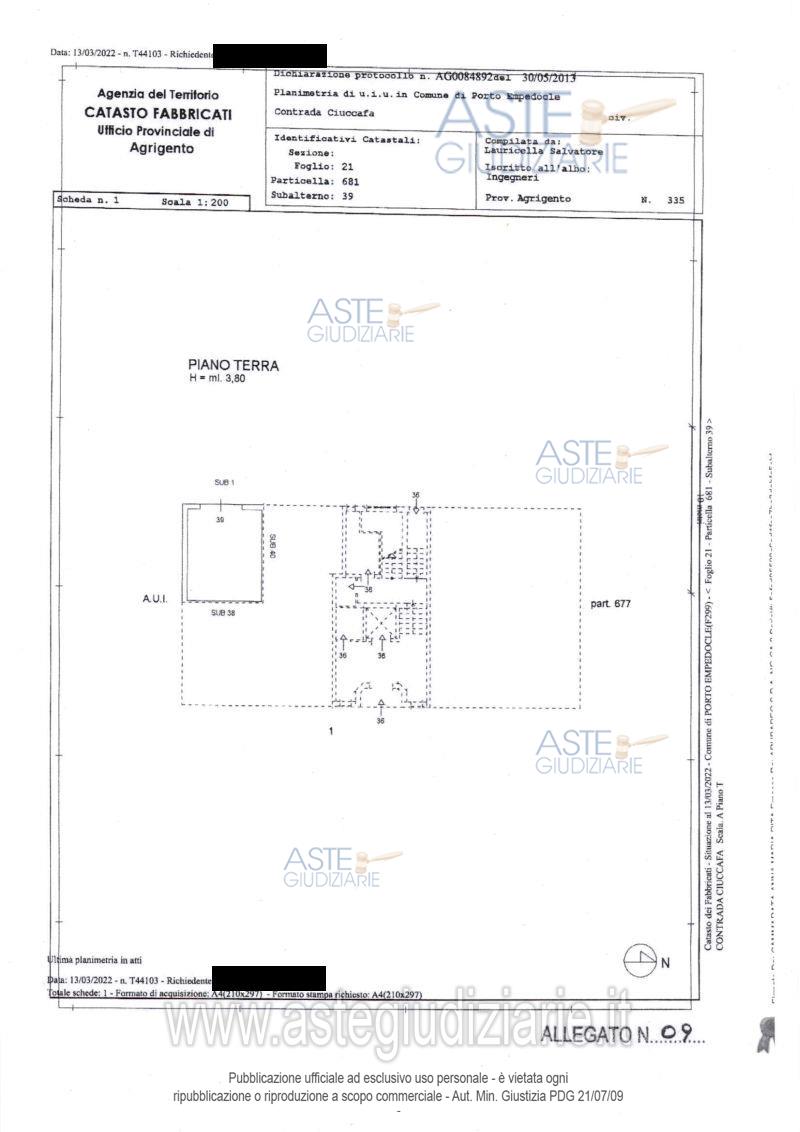 Vendita all'asta Senza incanto, con gara telematica sincrona mista - LOTTO UNICO: LOTTO UNICO: piena proprietà superficiaria per la quota di 1000/1000 di appartamento sito in Porto Empedocle (AG) c.da Ciuccafa via Antonino Cassarà Coop. Flavia, Edificio A, scala A, piano secondo, con una superficie lorda complessiva di mq.135,03 circa, con box auto pertinenziale soppalcato con un piccolo wc a piano terra di mq.27,96 circa. Conc.Ed.n.3553 del 06/12/2006 e successive varianti. APE classe “ D”. Prezzo base € 38.237,71 (offerta minima € 28.678,28). Data vendita 17/06/2026 ore 14:30. Professionista delegato alla vendita Avv. Fiorenza Cavaleri - Email "fiorcav@libero.it"; Tel. 092224629. Custode Giudiziario Avv. Fiorenza Cavaleri - Email "fiorcav@libero.it"; Tel. 092224629. Rif. Tribunale di Agrigento - Esecuzione immobiliare post legge 80 n. 66/2020