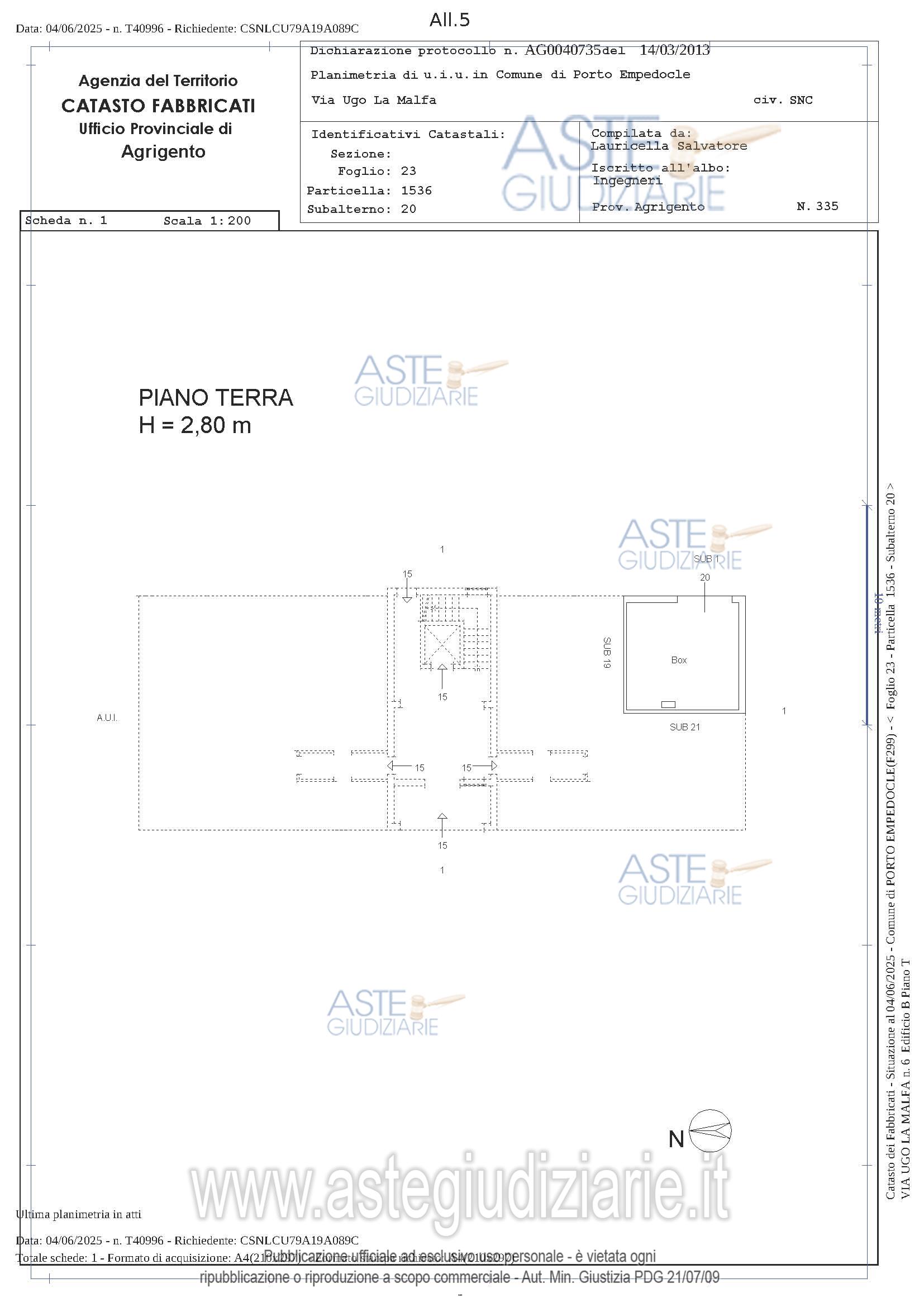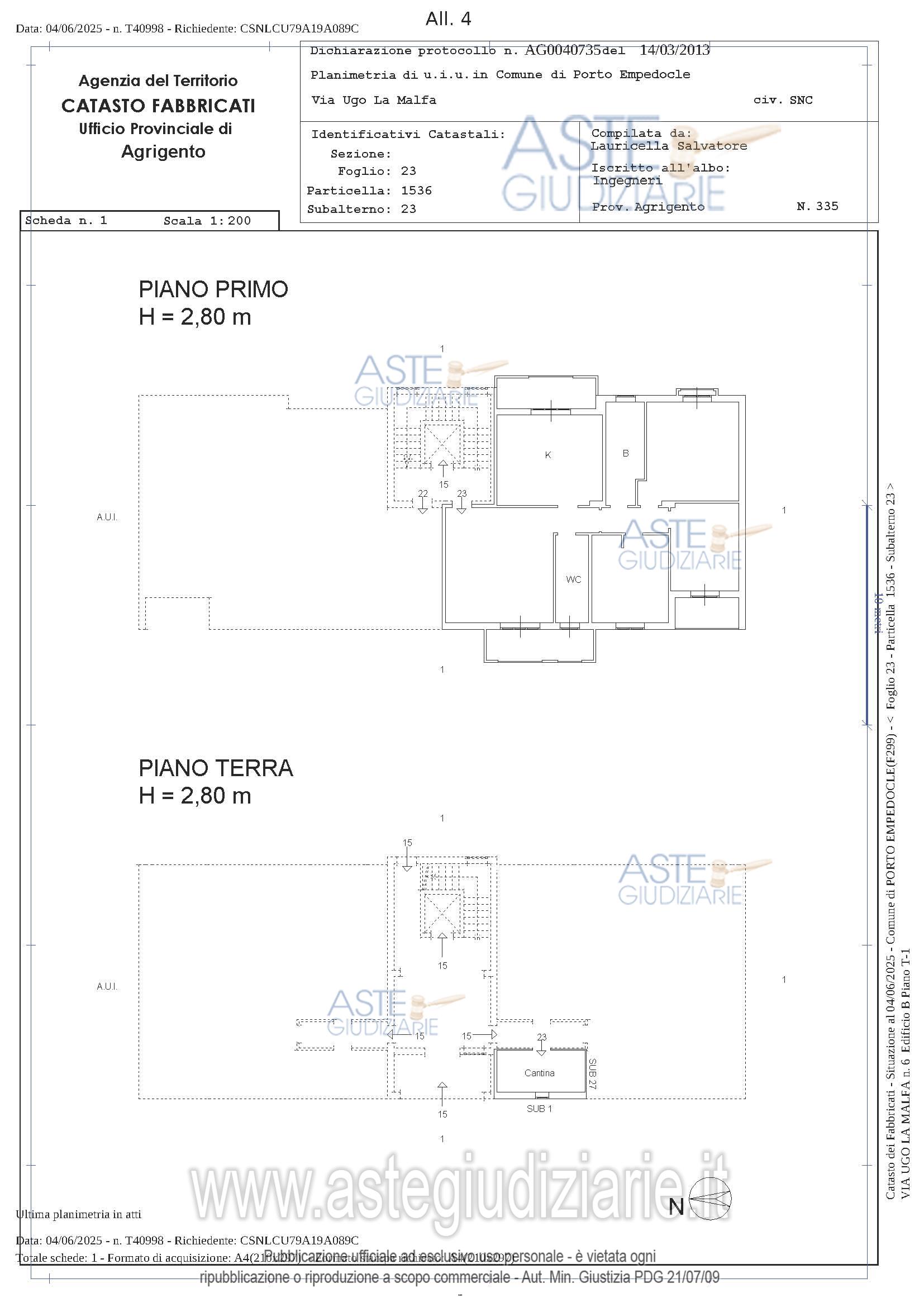 Vendita all'asta Senza incanto, con gara telematica asincrona - LOTTO 1: Appartamento, box auto e cantina. Appartamento posto al primo piano, mq. 137 catastali, 146 convenzionali, consta di cinque vani (salone-ingresso, cucina, tre camere da letto, WC e accessori), in classe energetica “C” (95,17 kwh*mc3*anno, APE del 23.06.2017); Vano cantina pertinenziale posto al piano di mq. 7,66 con accesso dall’androne condominiale; Box auto pertinenziale al piano terra con accesso sul lato dell’edificio opposto a quello del portone. Prezzo base € 135.103,00 (offerta minima € 101.330,00). Data inizio operazioni di vendita: 29/05/2026 ore 16:30. Professionista delegato alla vendita Avv. Luca Vetro - Email "info@avvocatovetro.eu"; Tel. 092223032. Custode Giudiziario Avv. Luca Vetro - Email "info@avvocatovetro.eu"; Tel. 092223032. Rif. Tribunale di Agrigento - Espropriazione immobiliare (cartabia) n. 81/2023