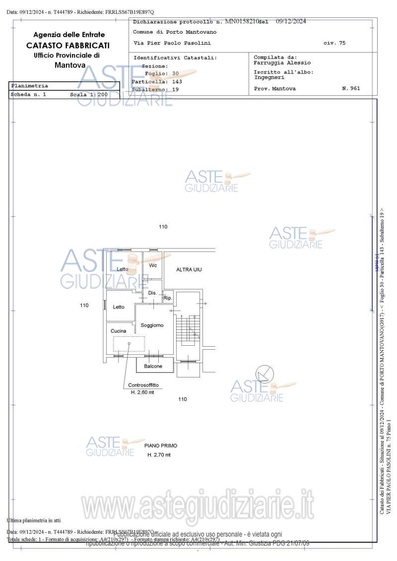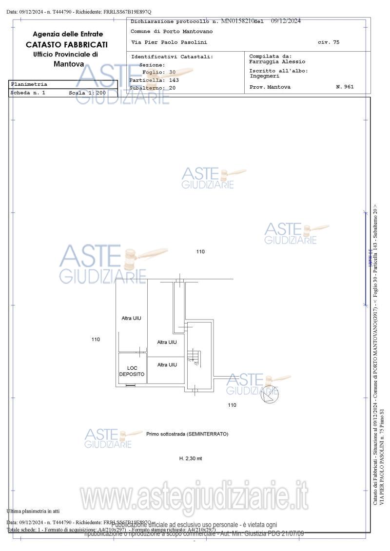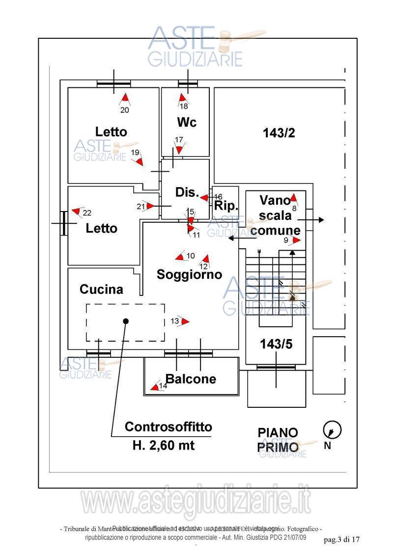 Vendita all'asta Senza incanto, con gara telematica sincrona mista - LOTTO UNICO: Proprietà di appartamento trilocale al piano primo, in edificio condominiale con annessi locale cantina e box auto al piano seminterrato. Prezzo base € 91.800,00 (offerta minima € 68.850,00). Data vendita 28/01/2026 ore 16:30. Giudice Mauro Pietro Bernardi. Professionista delegato alla vendita Not. Daniele Molinari - Email "dmolinari@notariato.it". Custode Giudiziario Sovemo Srl Istituto Vendite Giudiziarie Di Mantova - Email "immobiliaremantova@sovemo.com"; Tel. 0376220694. Rif. Tribunale di Mantova - Espropriazione immobiliare (cartabia) n. 143/2024