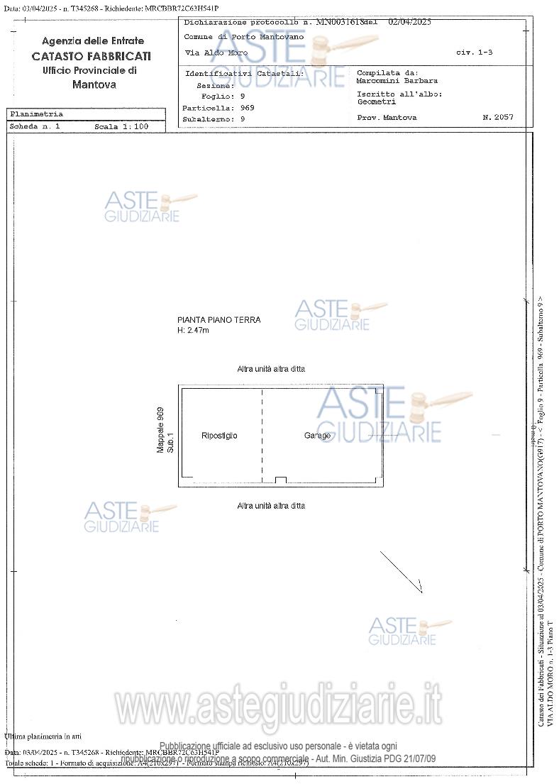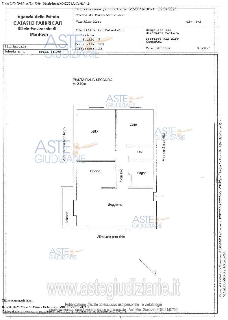 Vendita all'asta Senza incanto, con gara telematica sincrona mista - LOTTO UNICO: Piena proprietà di appartamento situato al 2° piano di un edificio a carattere condominiale e garage di pertinenza siti nel Comune di Porto Mantovano (MN) alla via A. Moro n. 1-3. La vendita non è soggetta ad IVA. Prezzo base € 72.250,00 (offerta minima € 54.188,00). Data vendita 17/04/2026 ore 16:00. Professionista delegato alla vendita Avv. Francesca Lanfredi - Email "francescalanfredi@studiolanfredi.it". Custode Giudiziario Ivg So.Ve.Mo - Email "immobiliaremantova@sovemo.com". Rif. Tribunale di Mantova - Espropriazione immobiliare (cartabia) n. 208/2024
