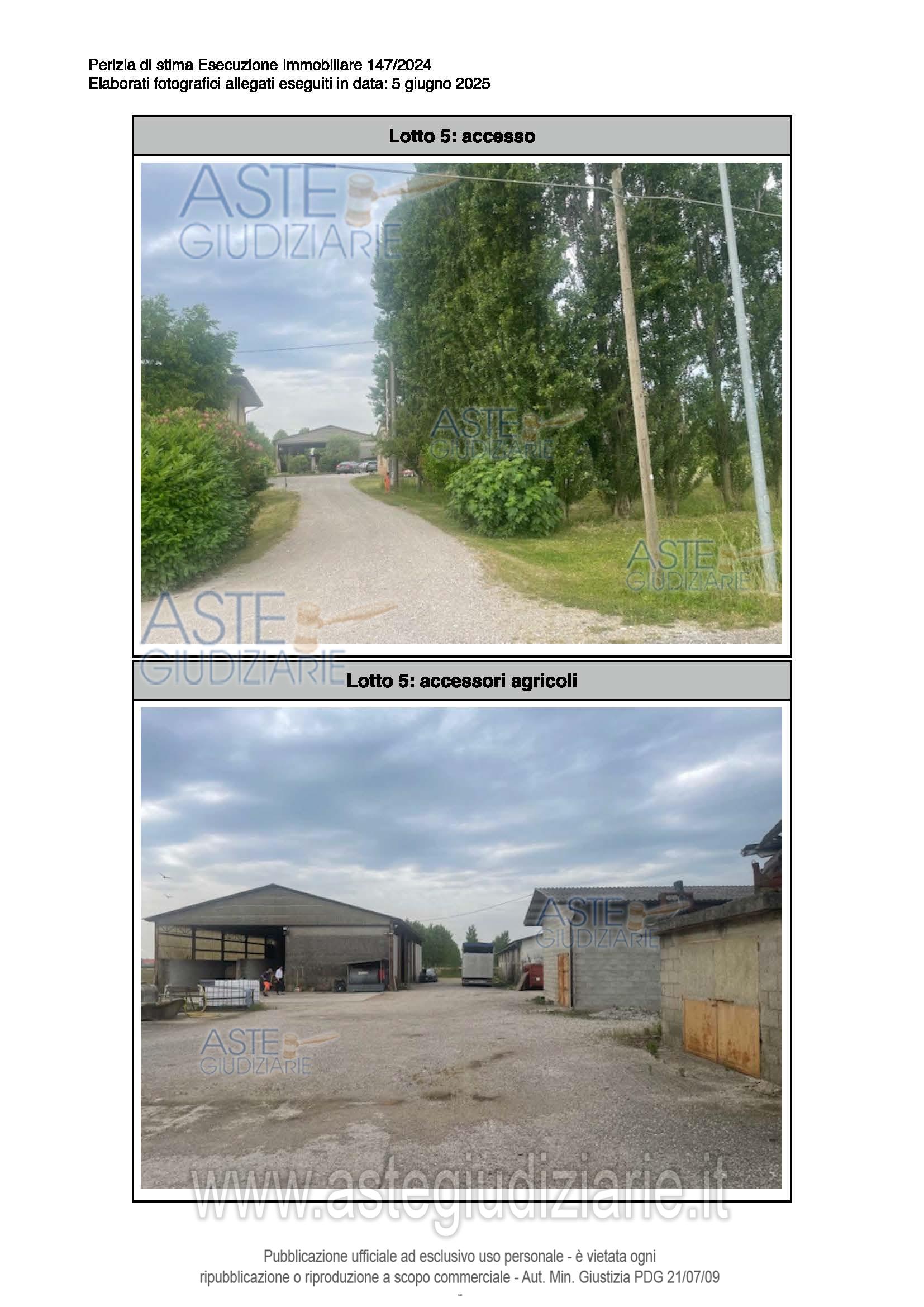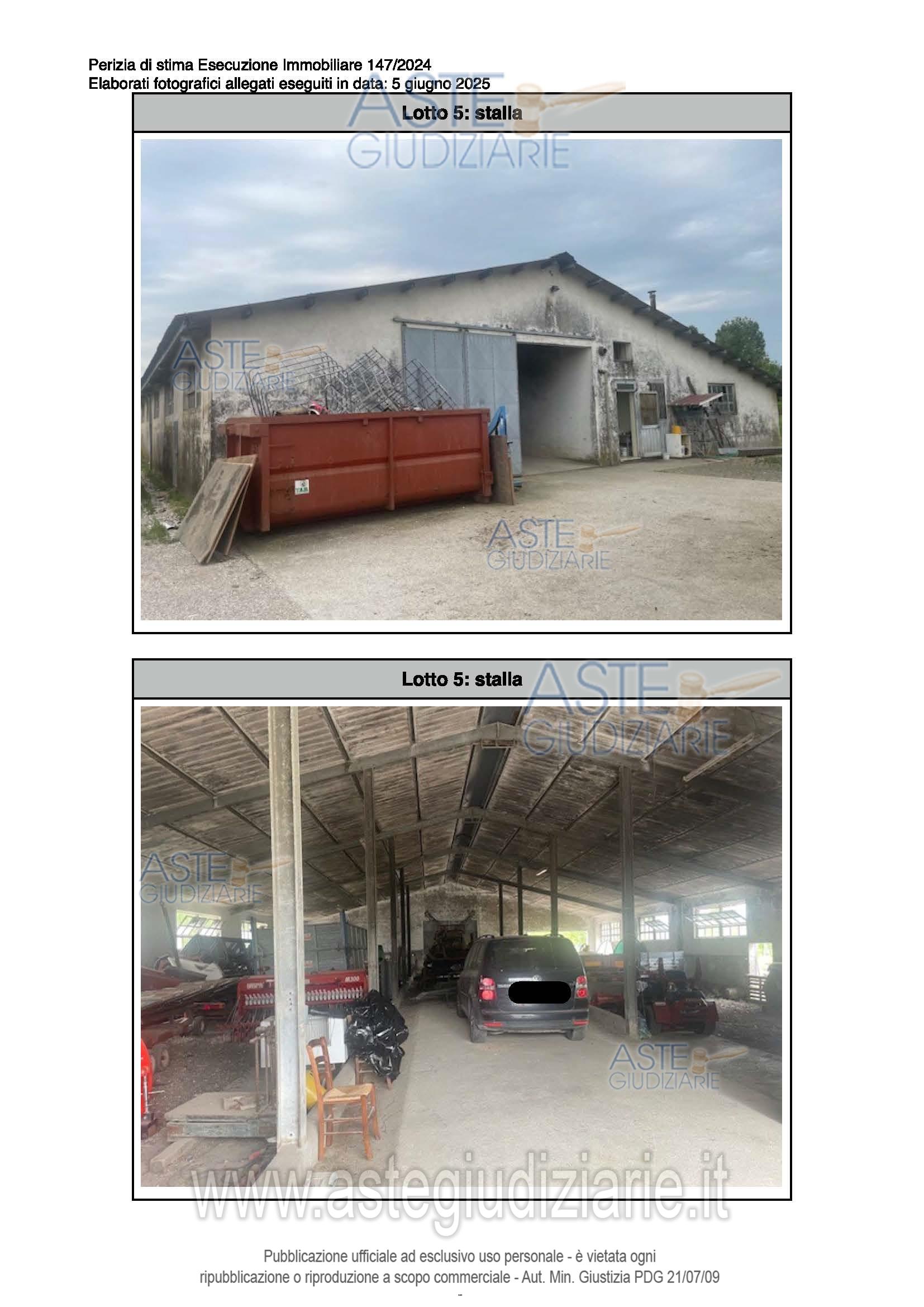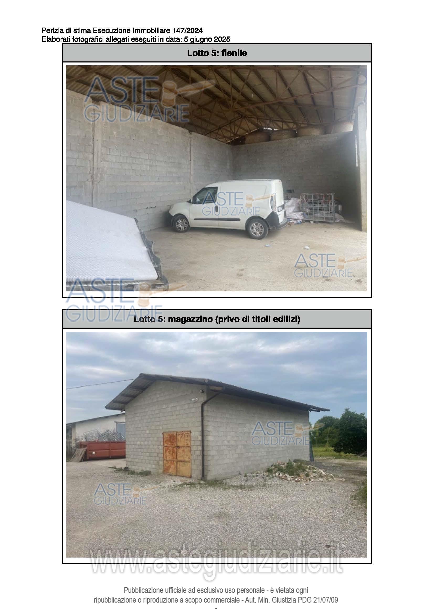 Vendita all'asta Senza incanto, con gara telematica sincrona - LOTTO 5: Complesso di immobili a destinazione produttiva agricola comprendente: ex stalla, fienile, magazzino/deposito e annessi agricoli della ex casa colonica. Questi ultimi si presentano come collabenti e pertanto inutilizzabili. Occupati. Difformità catastali ed edilizie sanabili. Prezzo base € 189.707,20 (offerta minima € 142.281,00). Data vendita 20/05/2026 ore 15:30. Giudice Dott. Elisa Tesco. Professionista delegato alla vendita Not. Luca Sioni - Email "aste@notaiosioni.it". Custode Giudiziario Custode Giudiziario - Email "custodi@associazionenotarile.pn.it"; Tel. 3294536349. Rif. Tribunale di Pordenone - Espropriazione immobiliare (cartabia) n. 147/2024