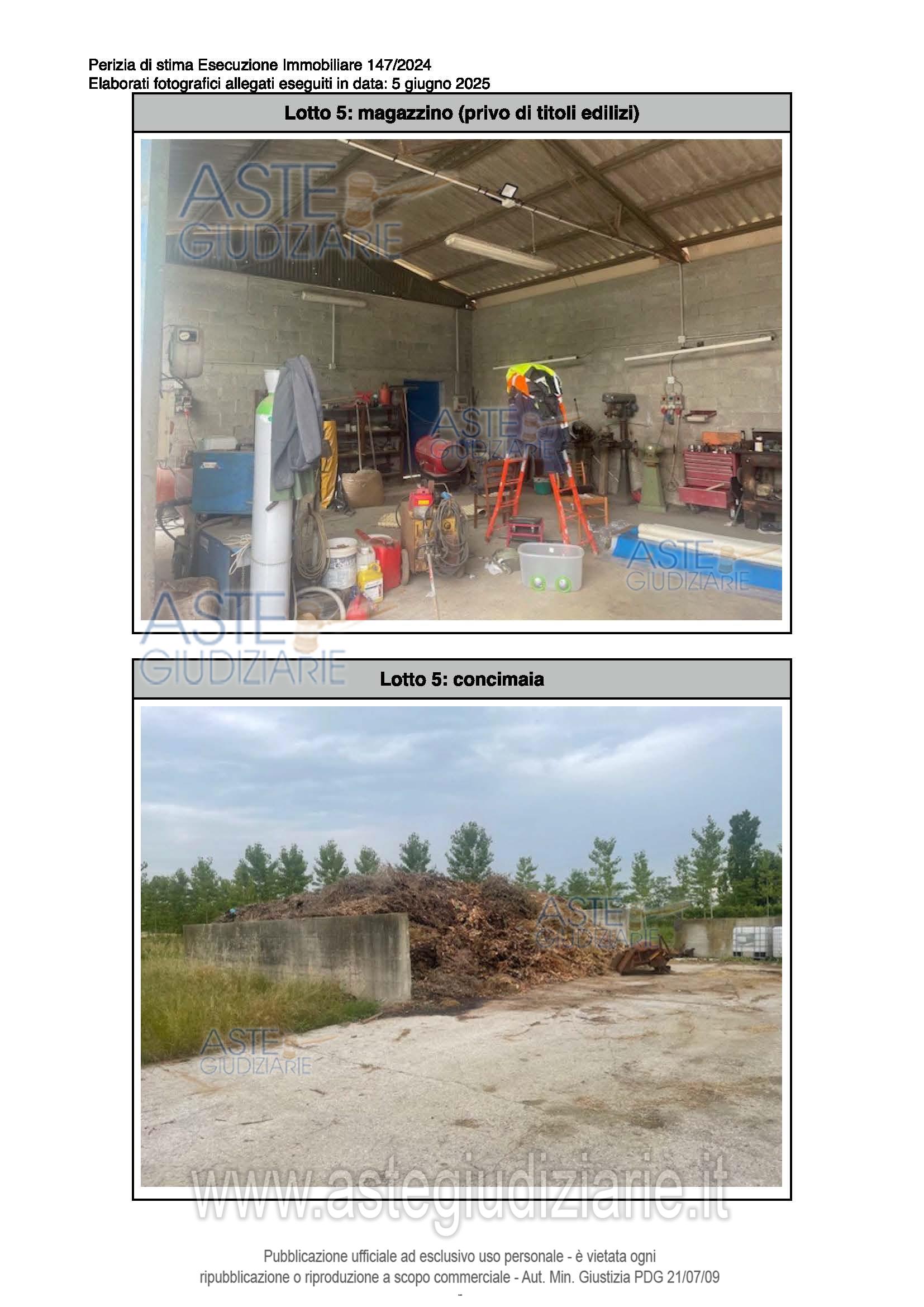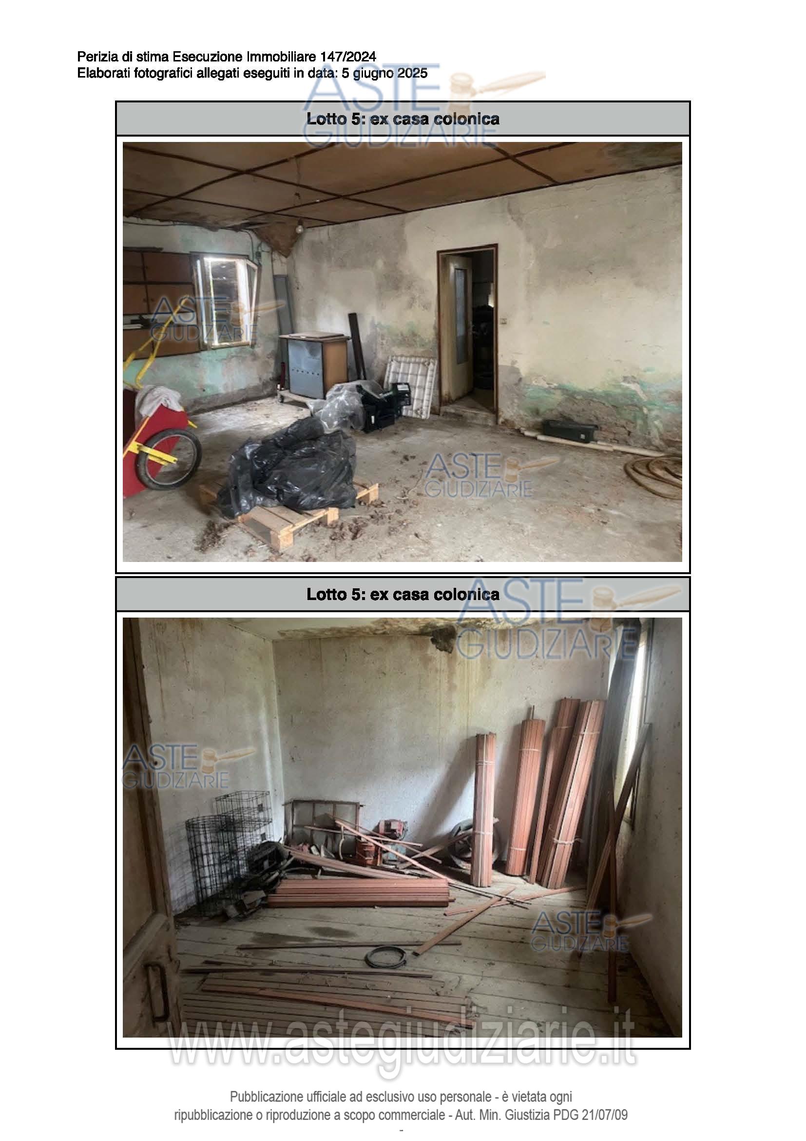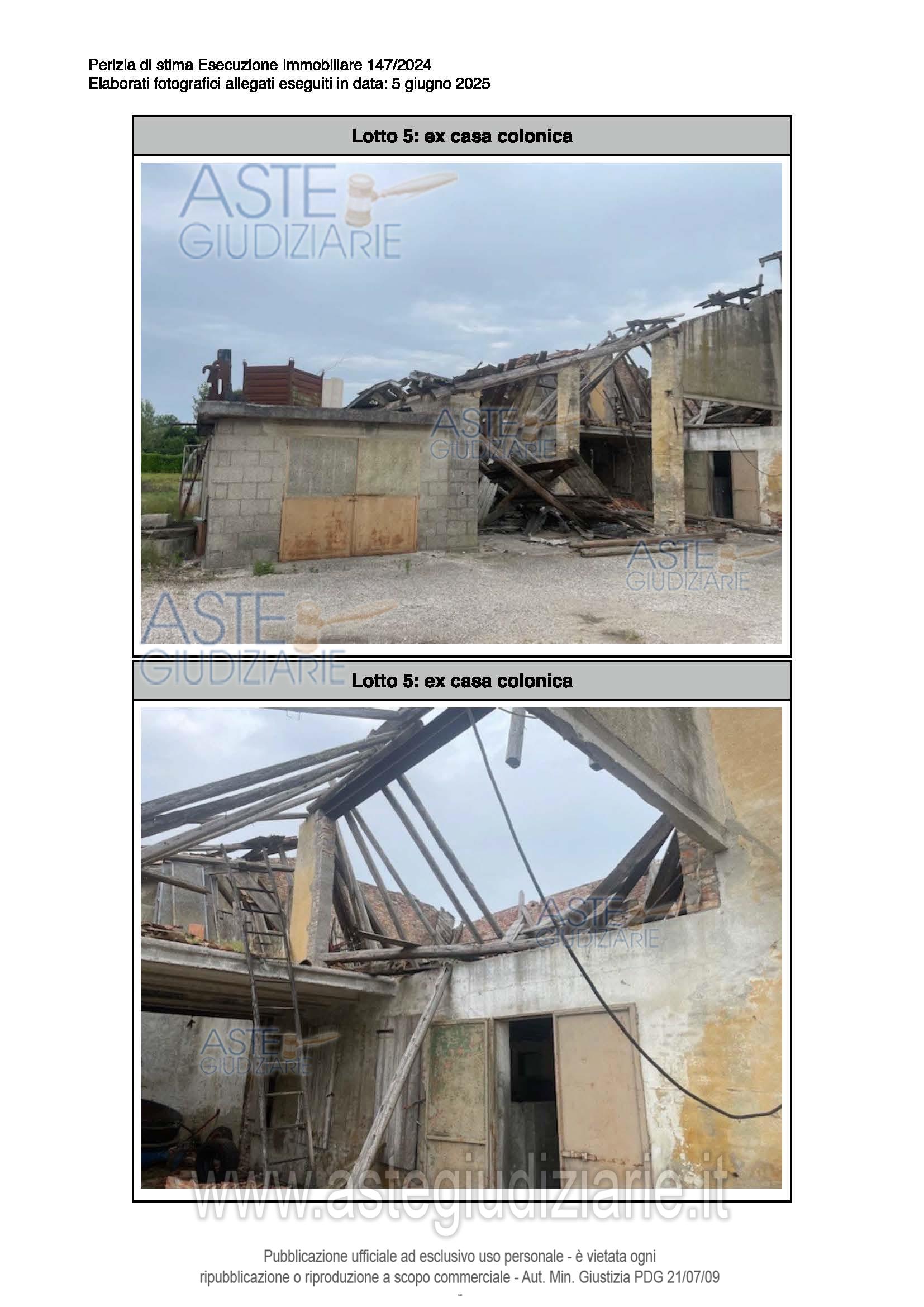 Vendita all'asta Senza incanto, con gara telematica sincrona - LOTTO 5: Complesso di immobili a destinazione produttiva agricola comprendente: ex stalla, fienile, magazzino/deposito e annessi agricoli della ex casa colonica. Questi ultimi si presentano come collabenti e pertanto inutilizzabili. Occupati. Difformità catastali ed edilizie sanabili. Prezzo base € 189.707,20 (offerta minima € 142.281,00). Data vendita 20/05/2026 ore 15:30. Giudice Dott. Elisa Tesco. Professionista delegato alla vendita Not. Luca Sioni - Email "aste@notaiosioni.it". Custode Giudiziario Custode Giudiziario - Email "custodi@associazionenotarile.pn.it"; Tel. 3294536349. Rif. Tribunale di Pordenone - Espropriazione immobiliare (cartabia) n. 147/2024