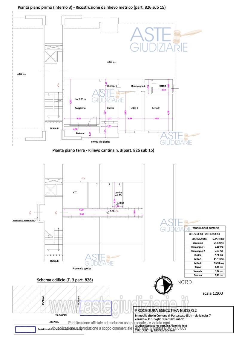 Vendita all'asta Senza incanto, con gara telematica asincrona - LOTTO 3: Portoscuso (Su), via Iglesias n. 7, intero diritto di proprietà su appartamento ad uso residenziale, situato al primo piano di fabbricato di cinque. Cantina di pertinenza al piano terra. Prezzo base € 42.200,00 (offerta minima € 31.650,00). Data inizio operazioni di vendita: 17/03/2026 ore 15:30. Giudice Valentina Frongia. Professionista delegato alla vendita Avv. Maria Luisa Lovicu - Email "marialuisalovicu@gmail.com"; Tel. 0703328442. Custode Giudiziario Ivg Cagliari - Email "ivg.visiteimmobili@tiscali.it"; Tel. 0702299036. Rif. Tribunale di Cagliari - Esecuzione immobiliare post legge 80 n. 313/2022