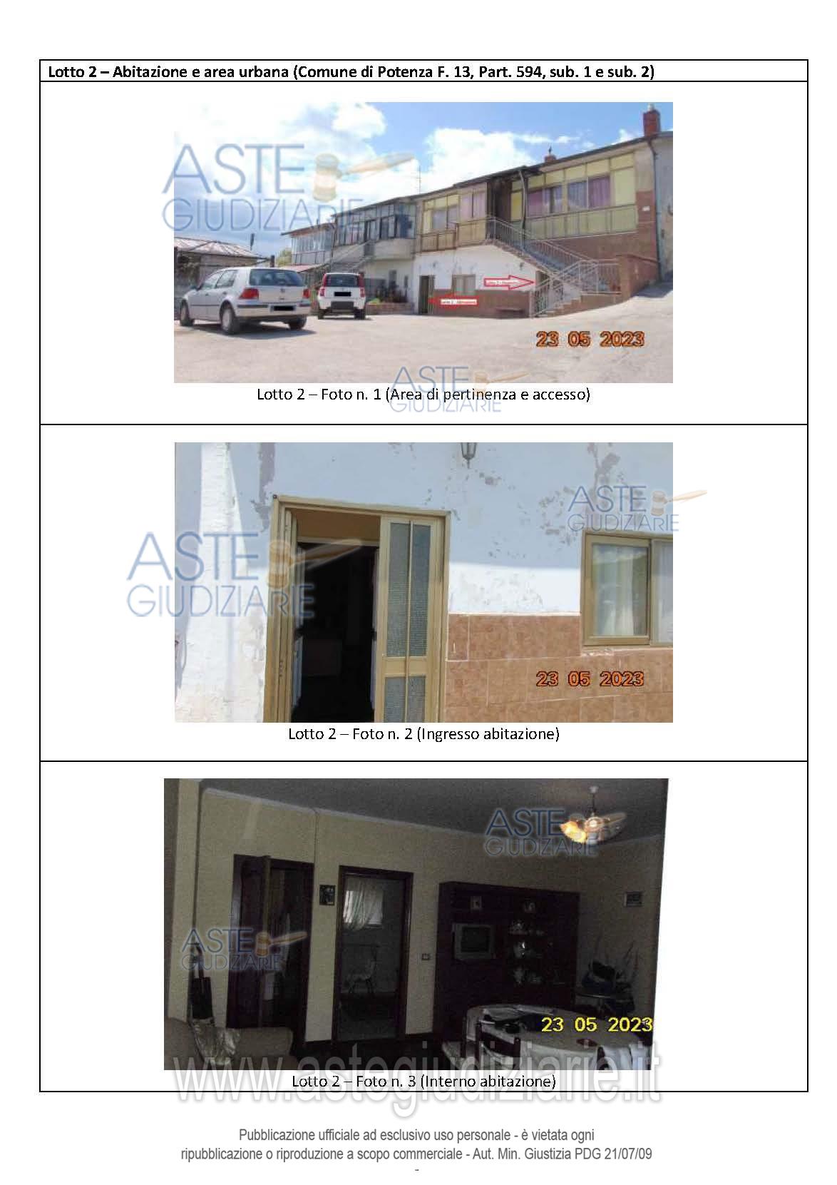 Vendita all'asta Senza incanto, con gara telematica asincrona - LOTTO 2: Abitazione e area urbana site nel Comune di Potenza, Via Borea, 145/P F. 13, part. 594, sub. 1 e sub. 2. Prezzo base € 8.258,20 (offerta minima € 6.193,65). Data inizio operazioni di vendita: 07/04/2026 ore 14:00. Professionista delegato alla vendita Avv. Elena Pompeo - Email "studiolegalepompeo@gmail.com"; Tel. 3393148461. Custode Giudiziario Avv. Elena Pompeo - Email "studiolegalepompeo@gmail.com"; Tel. 3393148461. Rif. Tribunale di Potenza - Esecuzione immobiliare post legge 80 n. 75/2021