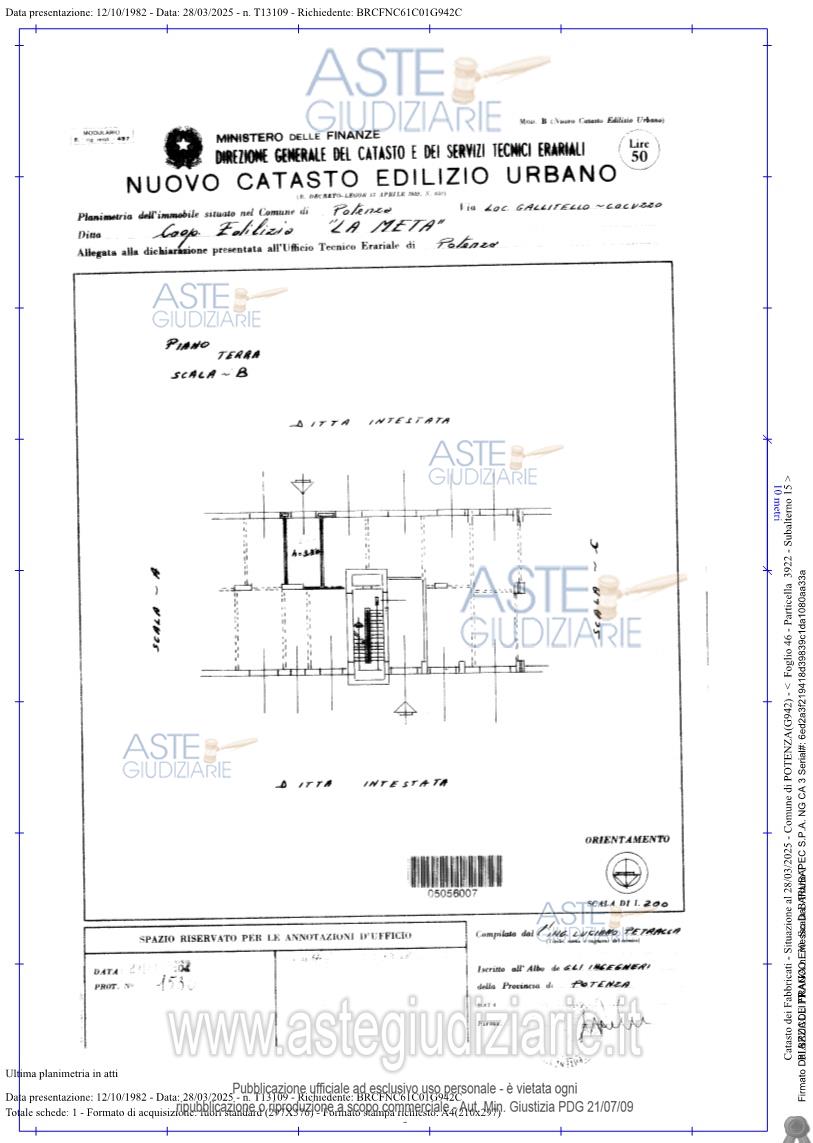 Vendita all'asta Senza incanto, con gara telematica asincrona - LOTTO UNICO: Proprietà superficiaria di appartamento in Potenza (PZ) al Piazzale Budapest n. 9, piano secondo – scala B – int. 4, in C.F. al Fg. 46, P.lla 3922, Sub. 46, Cat. A/2, Cl. 5, Cons. 6,5 vani; di locale deposito in Potenza al Piazzale Budapest (in catasto Piazzale Praga n. 32), piano terra – scala B, in C.F. al Fg. 46, P.lla 3922, Sub. 41, Cat. C/2, Cl. 5, Cons. 8 mq, e di locale autorimessa in Potenza al Piazzale Praga n. 30, in C.F. al Fg. 46, P.lla 3922, Sub. 15, Cat. C/6, Classe 5, consistenza 13 mq. Prezzo base € 113.300,00 (offerta minima € 84.975,00). Data inizio operazioni di vendita: 16/12/2025 ore 16:00. Professionista delegato alla vendita Avv. Francesco Sarno - Email "franc.sarno@gmail.com"; Cell. 3294957290; Tel. 09711566759. Custode Giudiziario Avv. Francesco Sarno - Email "franc.sarno@gmail.com"; Cell. 3294957290; Tel. 09711566759. Rif. Tribunale di Potenza - Espropriazione immobiliare (cartabia) n. 17/2025