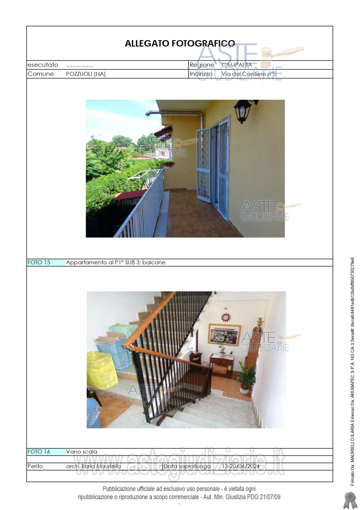 Vendita in attesa dell'emissione del nuovo bando d'asta. LOTTO 1: Appartamento in Pozzuoli alla via Del Cantiere n. 5 composto da soggiorno-cucina, tre camere, due bagni, disimpegno e tre balconi, ubicato al primo piano di una viletta su due livelli con circostante area in parte pavimentata ed in parte trattata a verde. Ultimo prezzo base € 113.250,00 (offerta minima € 84.937,50). Professionista delegato alla vendita Avv. Stefano Vitale - Email "stefanovitale@studiolegalevitale.net"; Cell. 3389878810; Tel. 08118088520. Custode Giudiziario Avv. Stefano Vitale - Email "stefanovitale@studiolegalevitale.net"; Cell. 3389878810; Tel. 08118088520. Rif. Tribunale di Napoli - Espropriazione immobiliare (cartabia) n. 223/2024