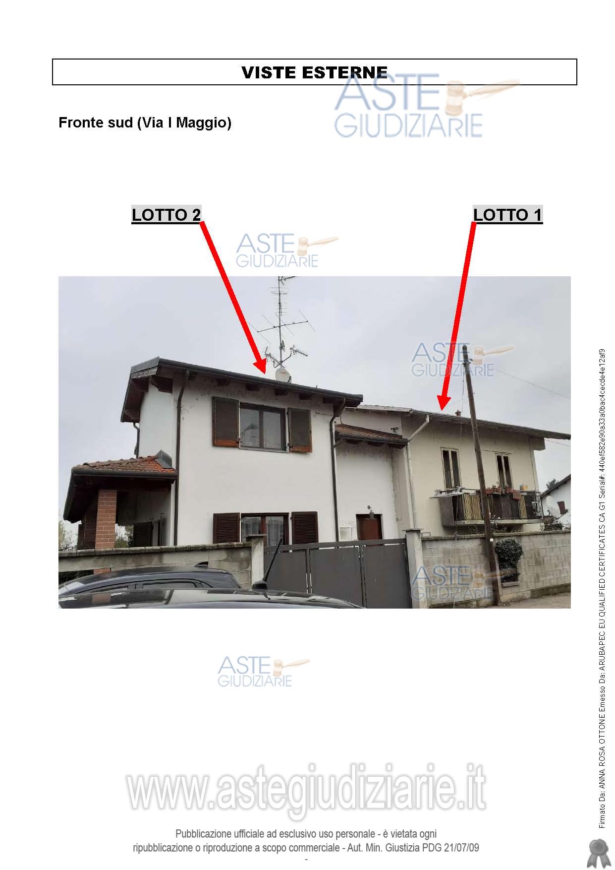 Vendita all'asta Senza incanto, con gara telematica asincrona - LOTTO 1: In Comune di Prarolo, alla Via I Maggio n. 4, terratetto elevato a due piani fuori terra composto