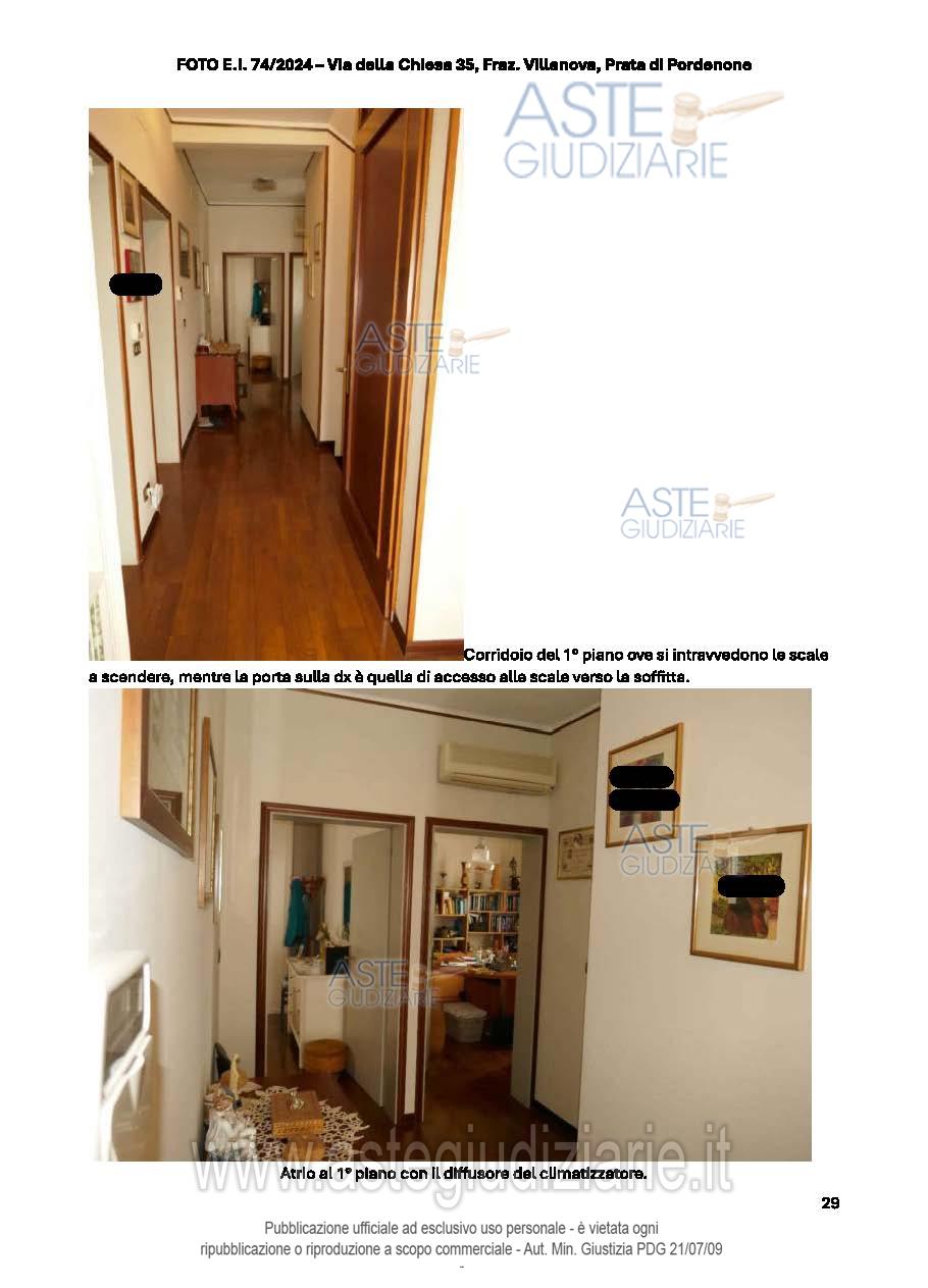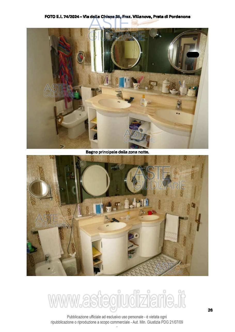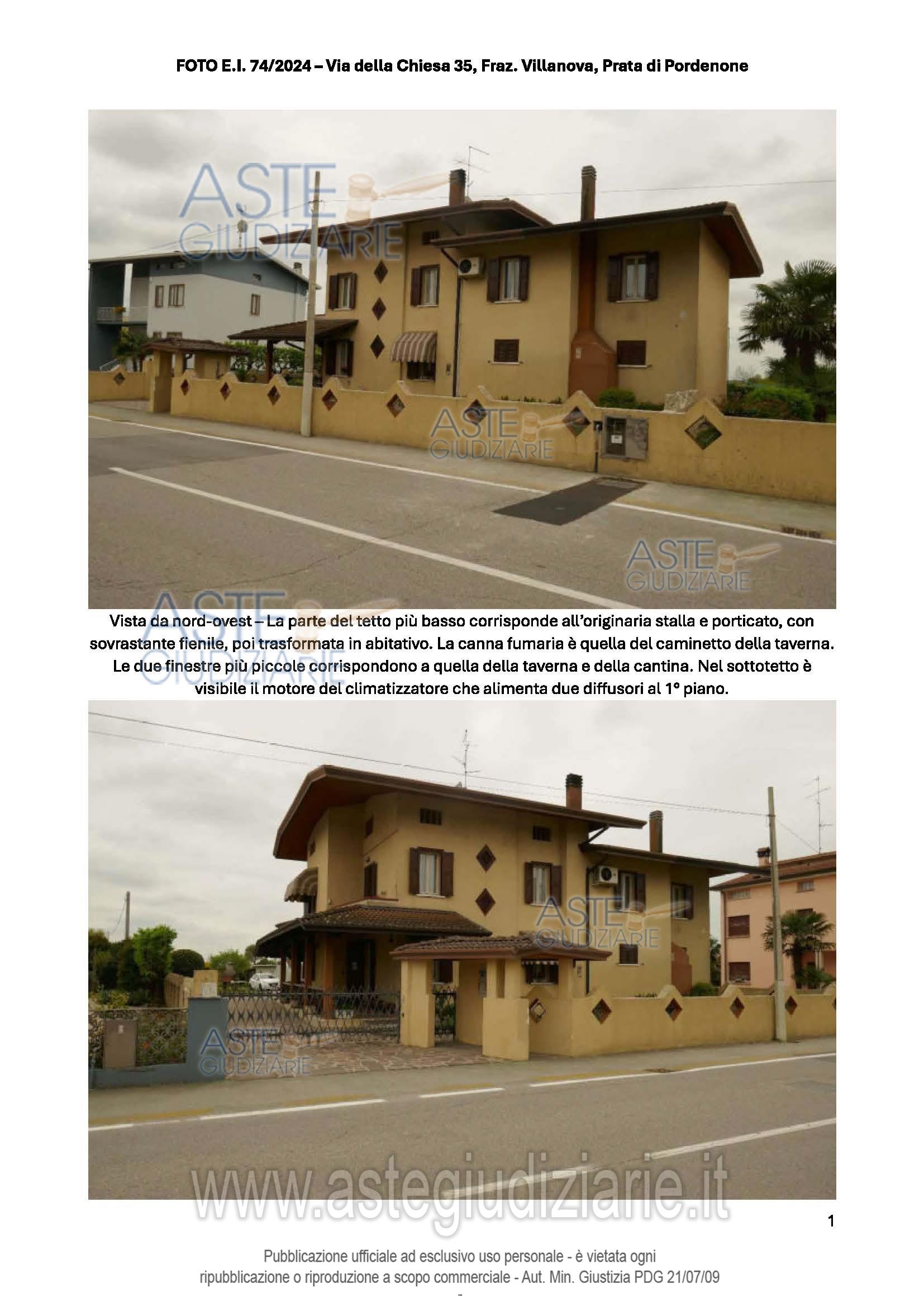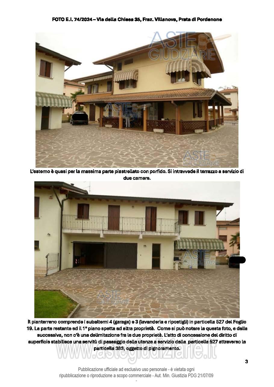 Vendita all'asta Senza incanto, con gara telematica sincrona - LOTTO UNICO: Abitazione su 3 piani fuori terra, con la parte giorno al PT, che comprende un'ampia zona giorno (soggiorno, pranzo e cucina), un ripostiglio (adibito a studiolo), dispensa, bagno, cantina e taverna. Al P.1 ci sono 4 camere, 3 bagni, vano ripostiglio utilizzato come studio. Al P.2 c'è una soffitta al grezzo utilizzata come ripostiglio. Lavanderia, 2 ripostigli, locale deposito e garage al P.T. Prezzo base € 170.700,00 (offerta minima € 128.025,00). Data vendita 20/01/2026 ore 17:00. Giudice Dott. Elisa Tesco. Professionista delegato alla vendita Not. Andrea Maistrello - Email "notaio@notaiomaistrello.it". Custode Giudiziario Ass. Not. Custode Giudiziario - Email "custodi@associazionenotarile.pn.it"; Tel. 3294536349. Rif. Tribunale di Pordenone - Espropriazione immobiliare (cartabia) n. 74/2024