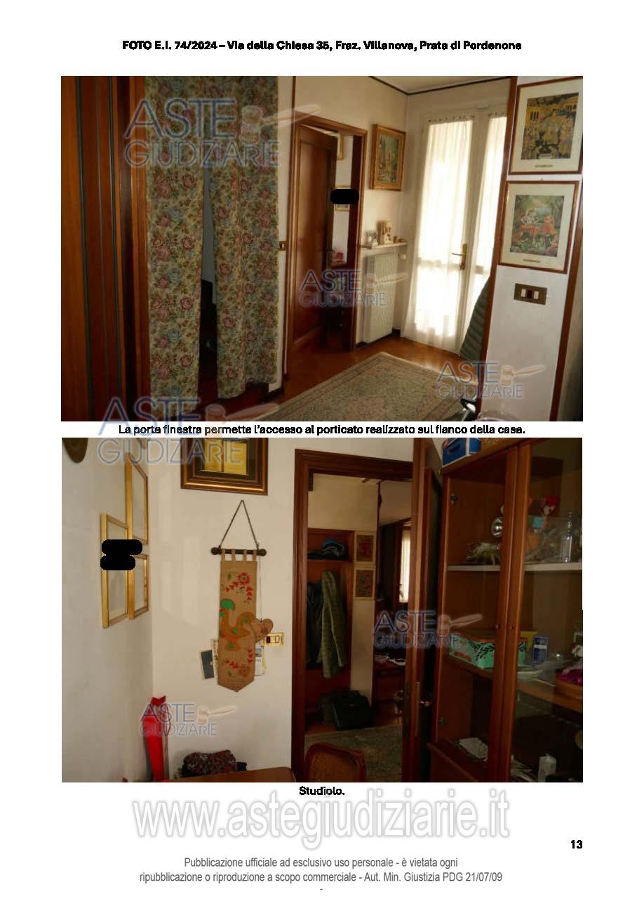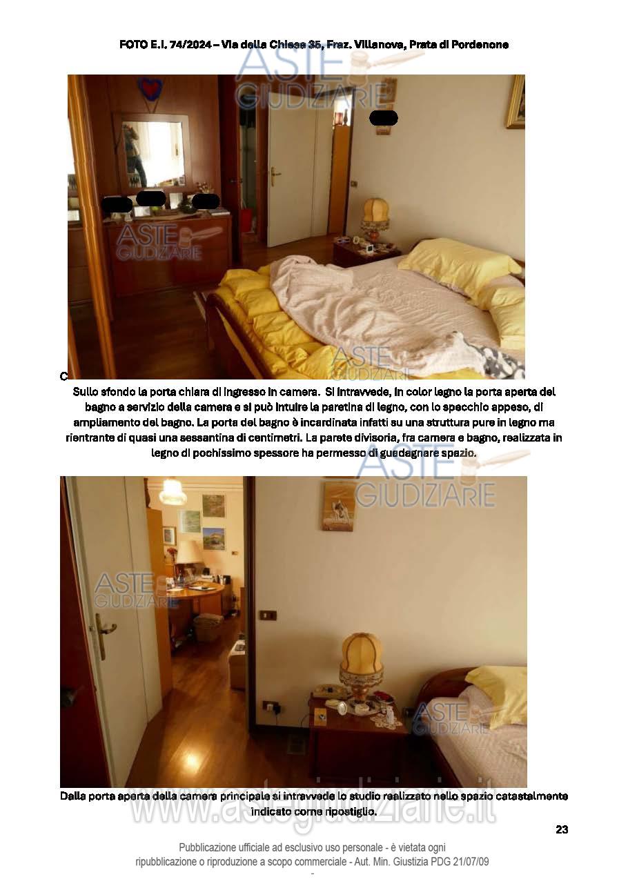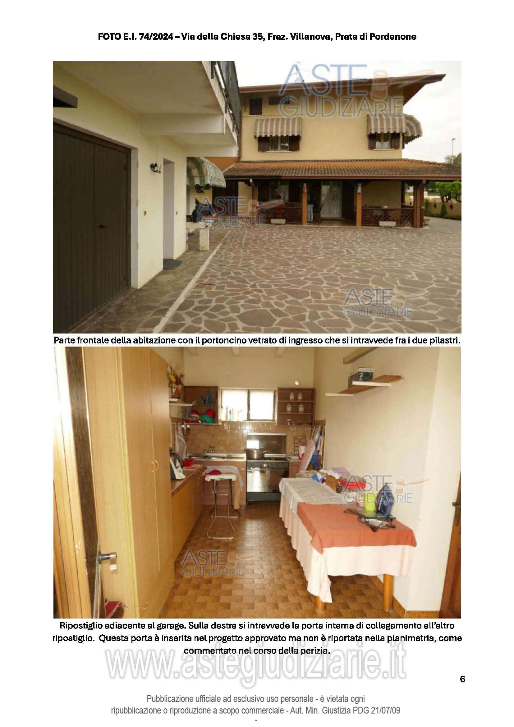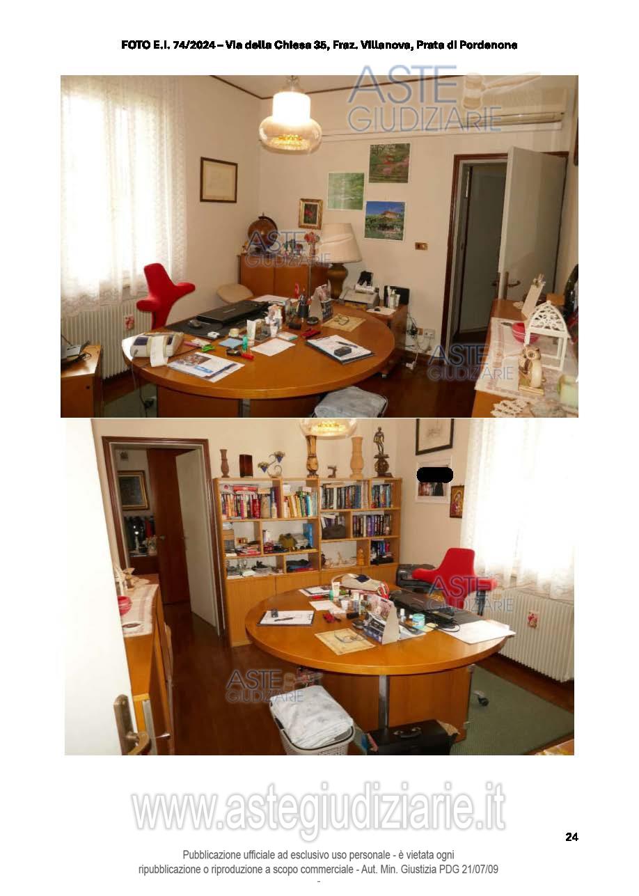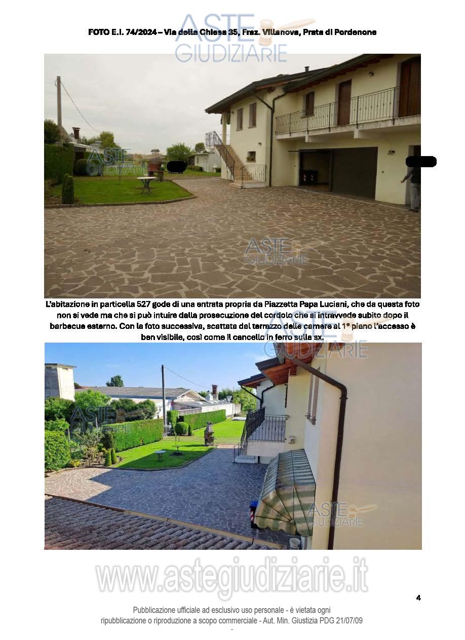 Vendita all'asta Senza incanto, con gara telematica sincrona - LOTTO UNICO: Abitazione su 3 piani fuori terra, con la parte giorno al PT, che comprende un'ampia zona giorno (soggiorno, pranzo e cucina), un ripostiglio (adibito a studiolo), dispensa, bagno, cantina e taverna. Al P.1 ci sono 4 camere, 3 bagni, vano ripostiglio utilizzato come studio. Al P.2 c'è una soffitta al grezzo utilizzata come ripostiglio. Lavanderia, 2 ripostigli, locale deposito e garage al P.T. Prezzo base € 170.700,00 (offerta minima € 128.025,00). Data vendita 20/01/2026 ore 17:00. Giudice Dott. Elisa Tesco. Professionista delegato alla vendita Not. Andrea Maistrello - Email "notaio@notaiomaistrello.it". Custode Giudiziario Ass. Not. Custode Giudiziario - Email "custodi@associazionenotarile.pn.it"; Tel. 3294536349. Rif. Tribunale di Pordenone - Espropriazione immobiliare (cartabia) n. 74/2024