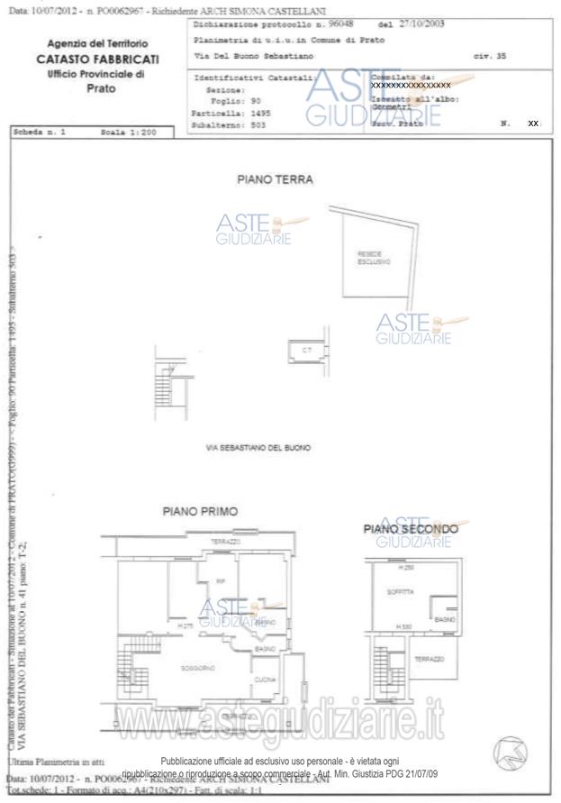 Vendita in attesa dell'emissione del nuovo bando d'asta. LOTTO 2: Appartamento posto al piano primo di un più ampio fabbricato sito in Prato, Via Sebastiano Del Buono n. 41, composto da quattro vani, oltre cucina, ripostiglio, disimpegno, due bagni, due terrazzi, oltre rampa di scale d’ingresso, locale centrale termica, resede tergale di 30,00 mq e soffitta con bagno e terrazzo a tasca al piano secondo; area urbana di natura pertinenziale al fabbricato di mq. 83,00. Superfici: abitazione Mq. 141,20, resede tergale Mq. 30,00, terrazzi (P1+P2) Mq. 60,85, soffitta Mq. 28,90. Ultimo prezzo base € 410.000,00 (offerta minima € 307.500,00). Professionista delegato alla vendita Not. Renato D'ambra - Email "rdambra@notariato.it"; Tel. 057452191. Custode Giudiziario Isveg Di Prato - Email "prenota.po@isveg.it"; Cell. 3773131585. Rif. Tribunale di Prato - Esecuzione immobiliare post legge 80 n. 299/2011