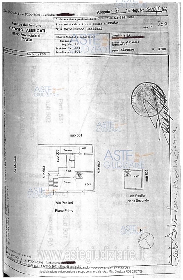Vendita all'asta Senza incanto, con gara telematica sincrona - LOTTO 2: Piena proprietà di appartamento per civile abitazione facente parte di unfabbricato condominiale costituito da due appartamenti, ubicato nel Comune diPrato, via F. Paolieri 5 al piano primo e composto da tre vani oltre disimpegno, cucina, due bagni ed un terrazzo tergale. Gli impianti presenti nell'abitazione sono idrico, elettrico ed igienico sanitario, conun bagno completo di tutte le apparecchiature.L'immobile non è dotato né di posto auto, né di ascensore e lo stato dimanutenzione risulta scarso. Prezzo base € 120.000,00 (offerta minima € 90.000,00). Data vendita 13/02/2026 ore 10:00. Professionista delegato alla vendita Avv. Francesco Scuccimarra - Email "avv.francescoscuccimarra@gmail.com"; Cell. 3381574561; Tel. 0574401773. Custode Giudiziario Is.Ve.G. S.R.L. Sede Di Prato - Email "pratoimmobiliari@isveg.it"; Tel. 057424123. Rif. Tribunale di Prato - Espropriazione immobiliare (cartabia) n. 114/2024