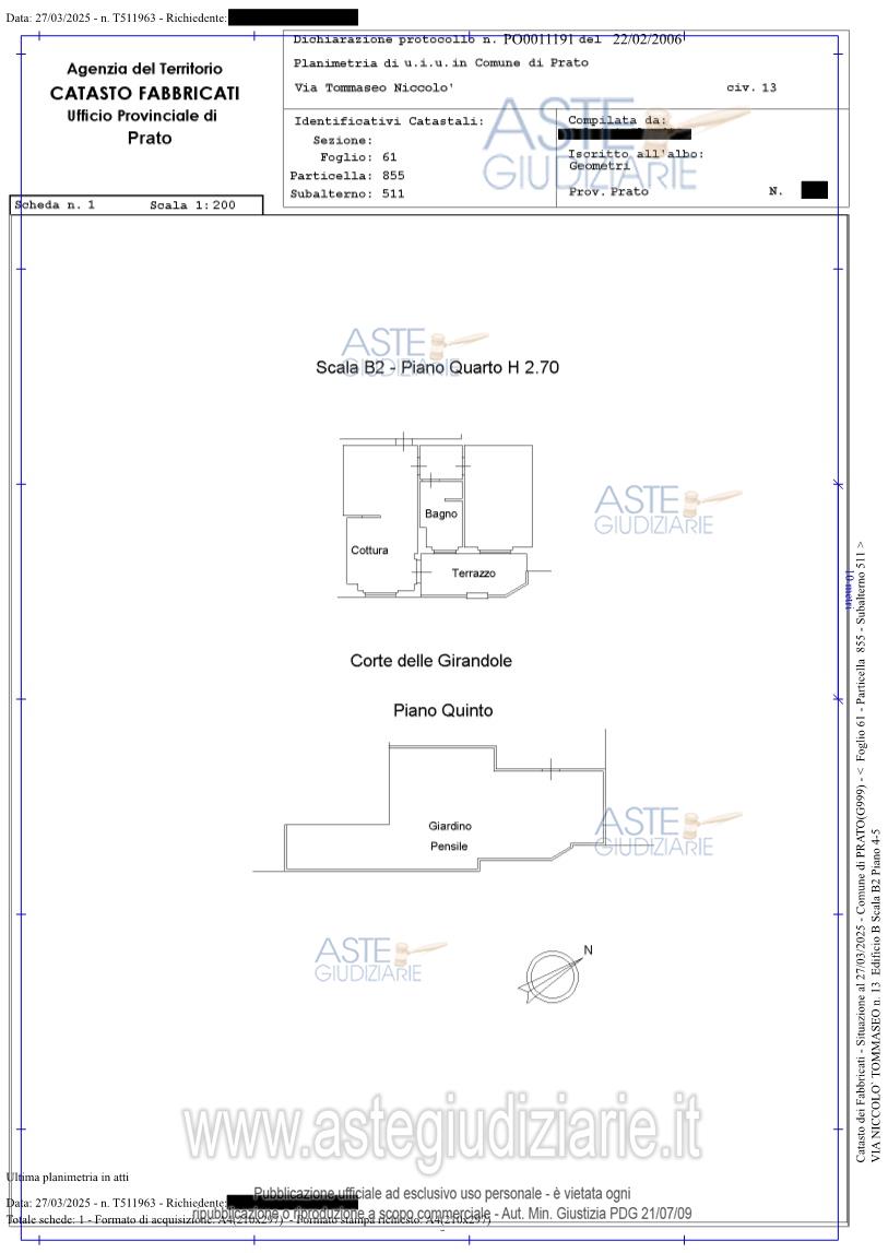 Vendita all'asta Senza incanto, con gara telematica sincrona - LOTTO UNICO: Piena proprietà di appartamento per civile abitazione, di taglio medio posto al P. 4° ed una pertinenza (lastrico solare ex giardino pensile) collocata al P. 5° ed un’autorimessa posta al livello seminterrato di un edificio condominiale; l'abitazione al P. 4°, distribuita su unico livello, è composta da due locali ai quali si accede mediante ingresso diretto sul soggiorno-pranzo (unico vano) collegato con un disimpegno per accedere al servizio igienico ed alla camera (altro vano) con terrazzo. Prezzo base € 168.500,00 (offerta minima € 126.375,00). Data vendita 16/04/2026 ore 10:00. Professionista delegato alla vendita Avv. Lilian Carbone - Email "lilian.carbone@email.it"; Tel. 0574592032. Custode Giudiziario De Bernardi Pietro - Email "prenota.po@isveg.it"; Cell. 3773131585; Tel. 05733571525. Rif. Tribunale di Prato - Espropriazione immobiliare (cartabia) n. 11/2025