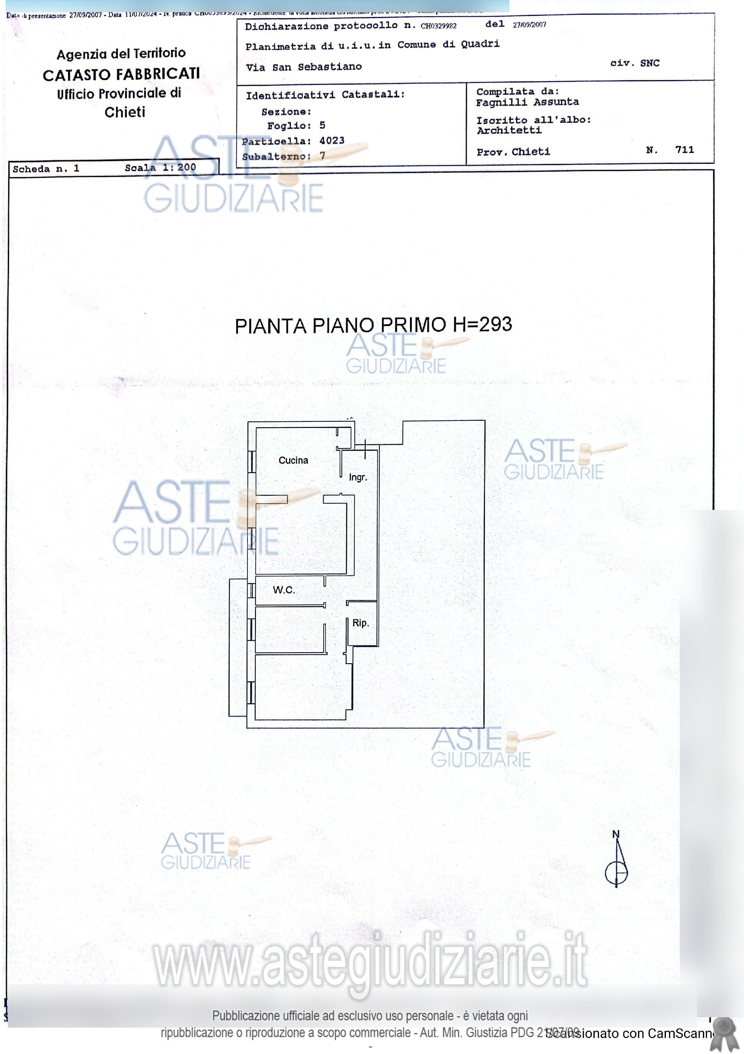 Vendita all'asta Senza incanto, con gara telematica asincrona - LOTTO UNICO: Piena proprieta` di Porzione di Fabbricato /Appartamento sito a Quadri prov. di Chieti alla via San Sebastiano n. 86. L’immobile e` di categoria A/3 Rendita 271,14 € Classe U , 5 vani superficie netta 86 mq superficie commerciale 100 mq lordi. Consiste di un ingresso, cucina e soggiorno, disimpegno zona notte, due stanze da letto di cui una doppia, un bagno, un ripostiglio, balcone su zona notte. Prezzo base € 47.000,00 (offerta minima € 32.250,00). Data inizio operazioni di vendita: 17/12/2025 ore 12:00. Giudice Chiara D'alfonso. Professionista delegato alla vendita Avv. Mario La Morgia - Email "mariolamorgia@studiolegalelamorgia.it"; Cell. 3287010222. Custode Giudiziario Ivg - Email "ivglanciano@gmail.com"; Tel. 0872715361. Rif. Tribunale di Lanciano - Espropriazione immobiliare (cartabia) n. 24/2024