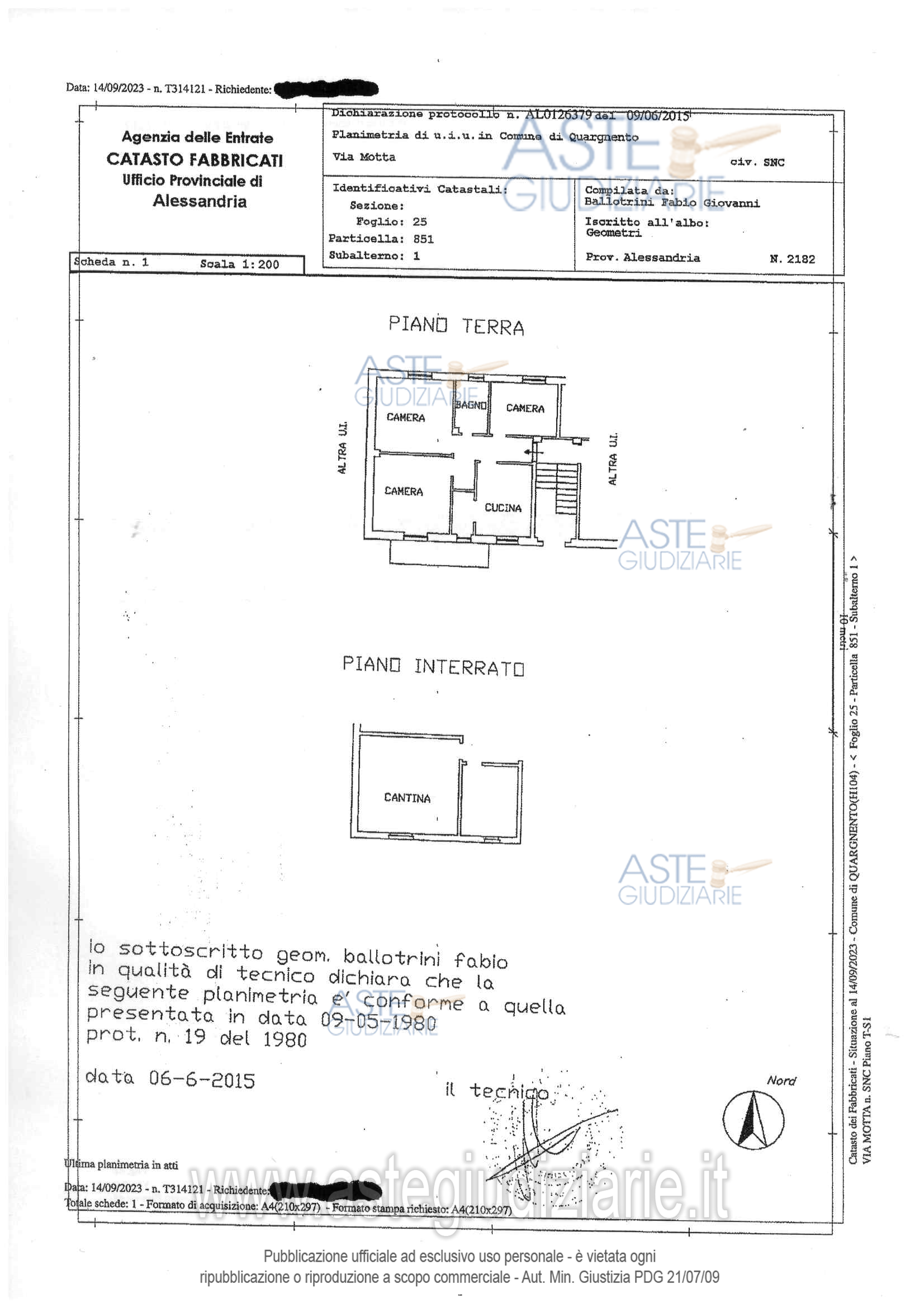 Vendita all'asta Senza incanto - LOTTO UNICO: alloggio e box auto - loc. sgombero. L’alloggio è situato al piano rialzato (1 f.t.) in fabbricato su due piani f.t. formato da quattro unità immobiliari e composto da: ingresso, cucina, angolo cottura, bagno, tre camere, balcone al piano rialzato; cantina al piano interrato. Prezzo base € 16.000,00 (offerta minima € 12.000,00). Data vendita 28/10/2025 ore 16:30. Professionista delegato alla vendita Avv. Anna Maria Chiama - Email "AVVOCATI.CHIAMATAVERNA@GMAIL.COM". Custode Giudiziario Avv. Anna Maria Chiama - Email "AVVOCATI.CHIAMATAVERNA@GMAIL.COM". Rif. Tribunale di Alessandria - Espropriazione immobiliare (cartabia) n. 198/2023