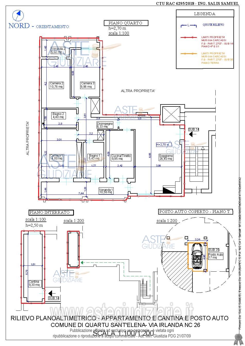 Vendita all'asta Con incanto - LOTTO UNICO: In Comune di Quartu Sant’Elena: quota pari all’intero del diritto di proprietà sull’appartamento al piano quarto del maggior fabbricato con accesso dalla Via composto da: soggiorno, cucina, disimpegno, tre camere, due bagni, due verande. Completano la consistenza dell’immobile una cantina al piano seminterrato e un posto auto al piano pilotis. Prezzo base € 180.000,00. Data vendita 16/06/2026 ore 09:00. Giudice: Antonio Dessi'.