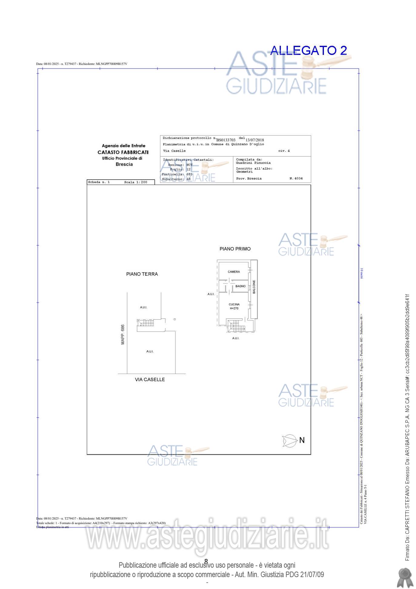 Vendita in attesa dell'emissione del nuovo bando d'asta. LOTTO UNICO: piena proprietà Appartamento al primo piano con posto auto scoperto e posto auto coperto . Ultimo prezzo base € 113.175,00 (offerta minima € 84.881,25). Professionista delegato alla vendita Rag. Orianna Turla - Email "info.bsimmobiliare@gmail.com". Custode Giudiziario Rag. Orianna Turla - Email "info.bsimmobiliare@gmail.com".  Rif. Tribunale di Brescia - Espropriazione immobiliare (cartabia) n. 281/2024