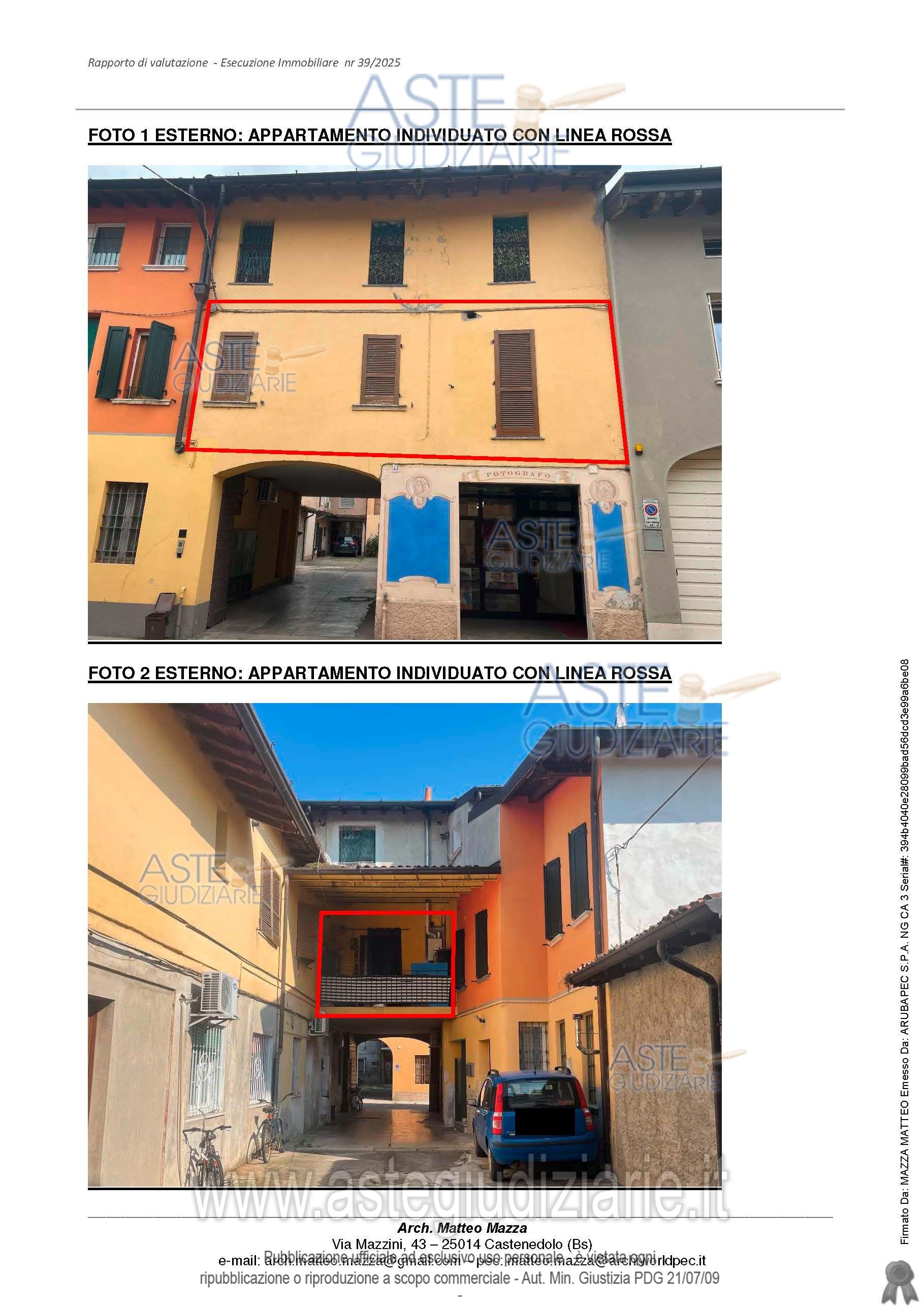 Vendita all'asta Senza incanto, con gara telematica asincrona - LOTTO 1: Appartamento trilocale al primo piano di un edificio a corte, oltre alle proporzionali quote sulle parti comuni. Prezzo base € 46.500,00 (offerta minima € 34.875,00). Data inizio operazioni di vendita: 10/02/2026 ore 11:30. Professionista delegato alla vendita Avv. Giulia Alessandri. Custode Giudiziario Avv. Giulia Alessandri - Email "info.bsimmobiliare@gmail.com". Rif. Tribunale di Brescia - Espropriazione immobiliare (cartabia) n. 39/2025
