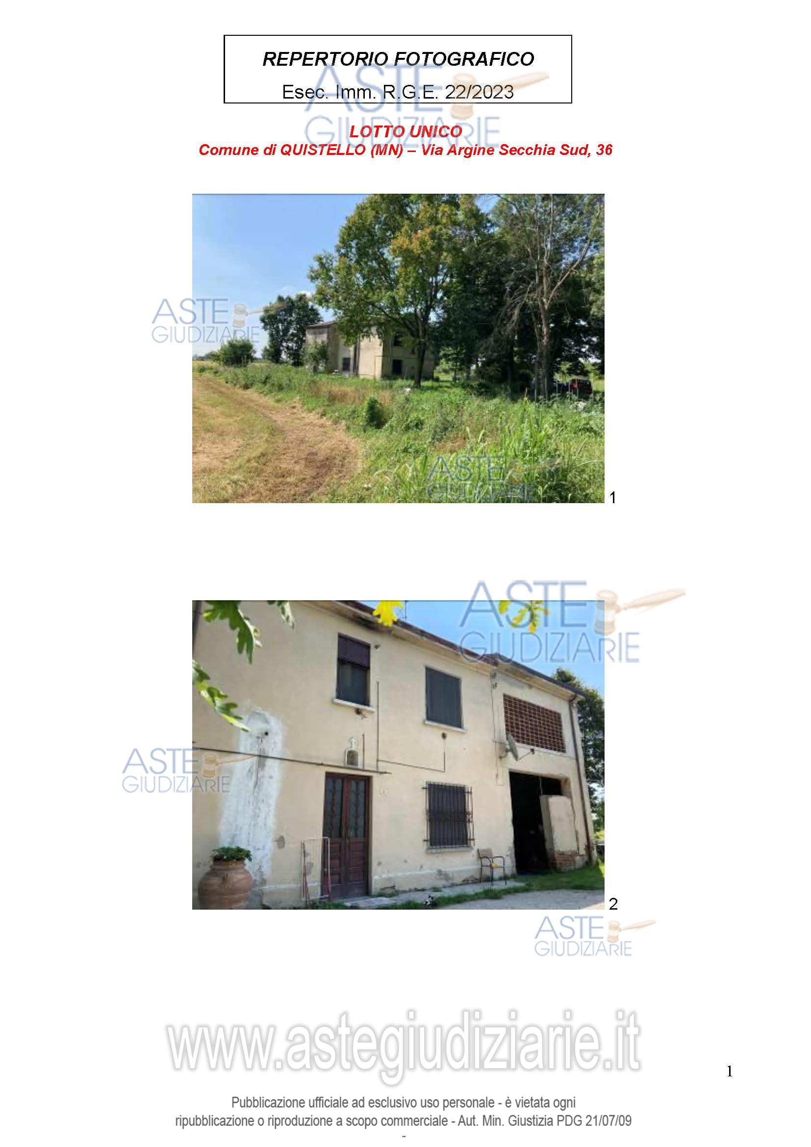 Vendita all'asta Senza incanto, con gara telematica sincrona mista - LOTTO UNICO: Proprietà di loghino costituito da fabbricato ad uso abitativo con rustici e porzione di fabbricato collabente oltre a terreno agricolo circostante. Prezzo base € 35.888,00 (offerta minima € 26.916,00). Data vendita 04/03/2026 ore 14:30. Giudice Francesca Arrigoni. Professionista delegato alla vendita Not. Silvia Bagnoli - Email "sbagnoli@notariato.it". Custode Giudiziario Sovemo Srl Istituto Vendite Giudiziarie Di Mantova - Email "immobiliaremantova@sovemo.com"; Tel. 0376220694. Rif. Tribunale di Mantova - Esecuzione immobiliare post legge 80 n. 22/2023