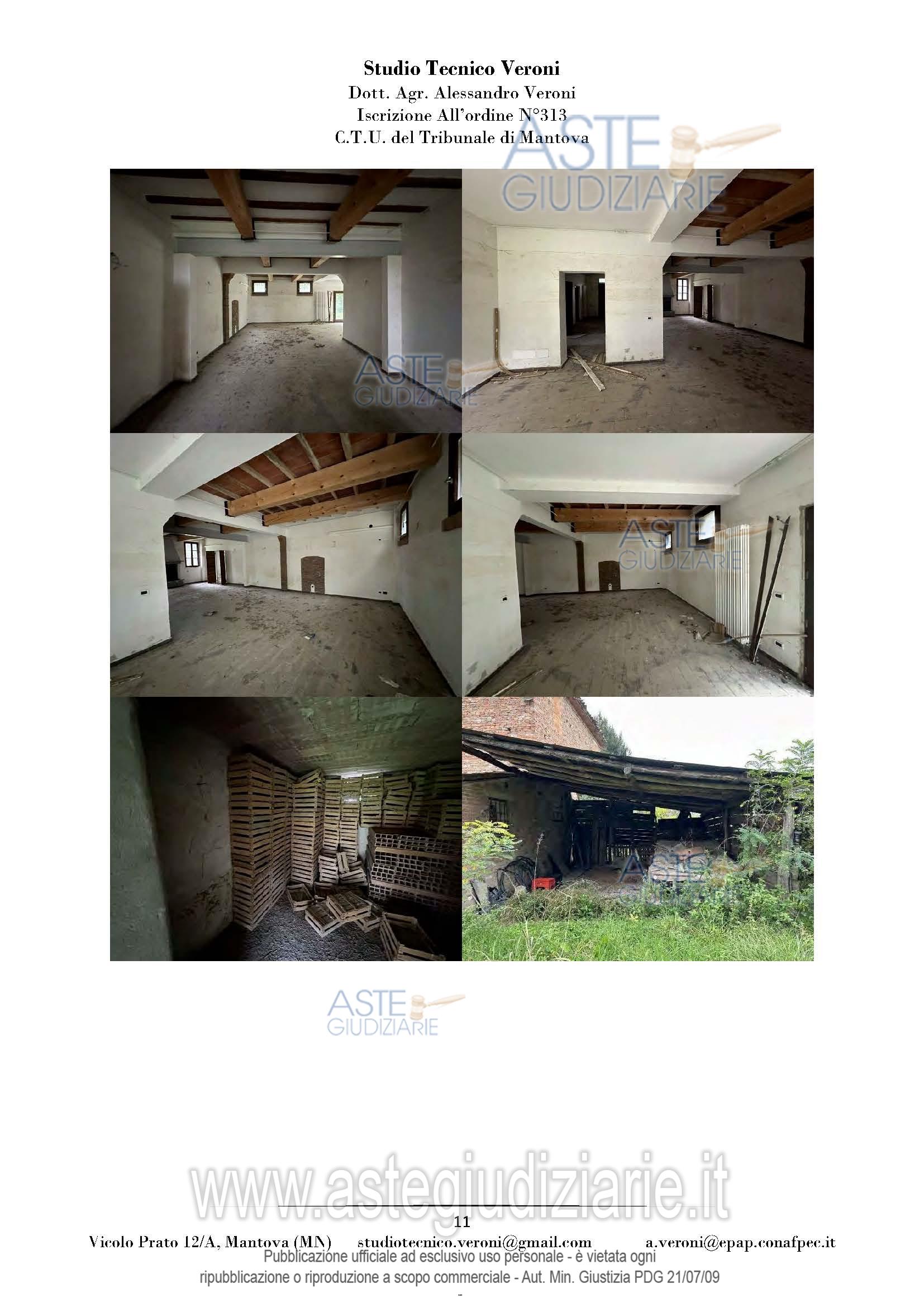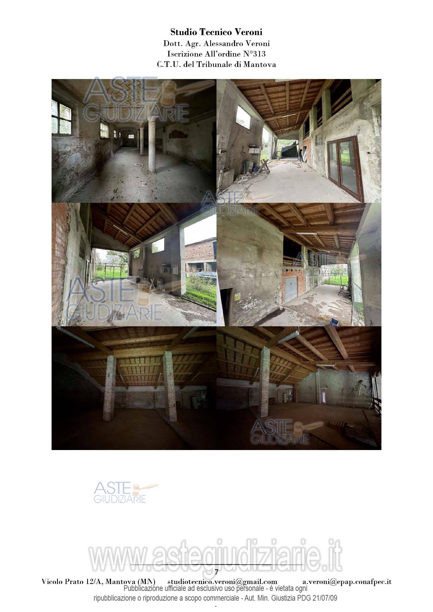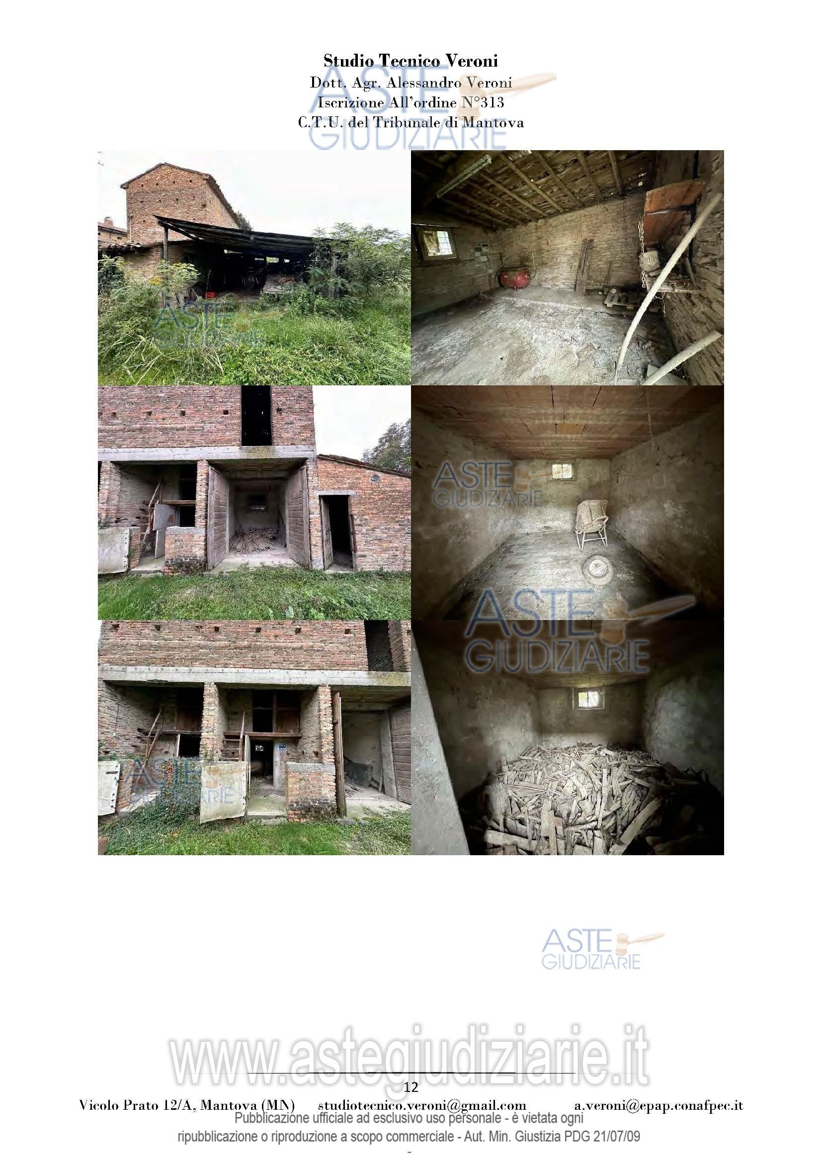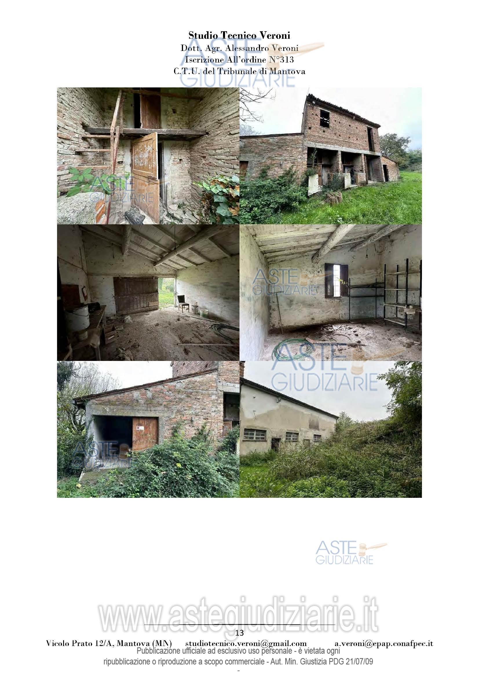 Vendita all'asta Senza incanto, con gara telematica sincrona mista - LOTTO UNICO: Piena proprietà di casa colonica dislocata su tre piani fuori terra nonché fabbricato rurale composto da cinque corpi di fabbrica, il tutto facente parte di un più amplio complesso agricolo, oltre a fabbricato rurale collabente e cinque terreni agricoli. Prezzo base € 93.713,00 (offerta minima € 70.285,00). Data vendita 01/04/2026 ore 14:30. Giudice Dott. Francesca Arrigoni. Professionista delegato alla vendita Not. Roberta Matera - Email "rmatera@notariato.it". Custode Giudiziario Sovemo Srl Istituto Vendite Giudiziarie Di Mantova - Email "immobiliaremantova@sovemo.com"; Tel. 0376220694. Rif. Tribunale di Mantova - Espropriazione immobiliare (cartabia) n. 152/2024