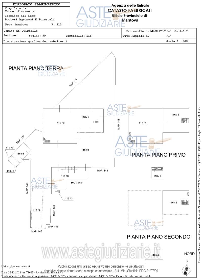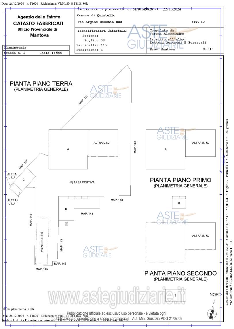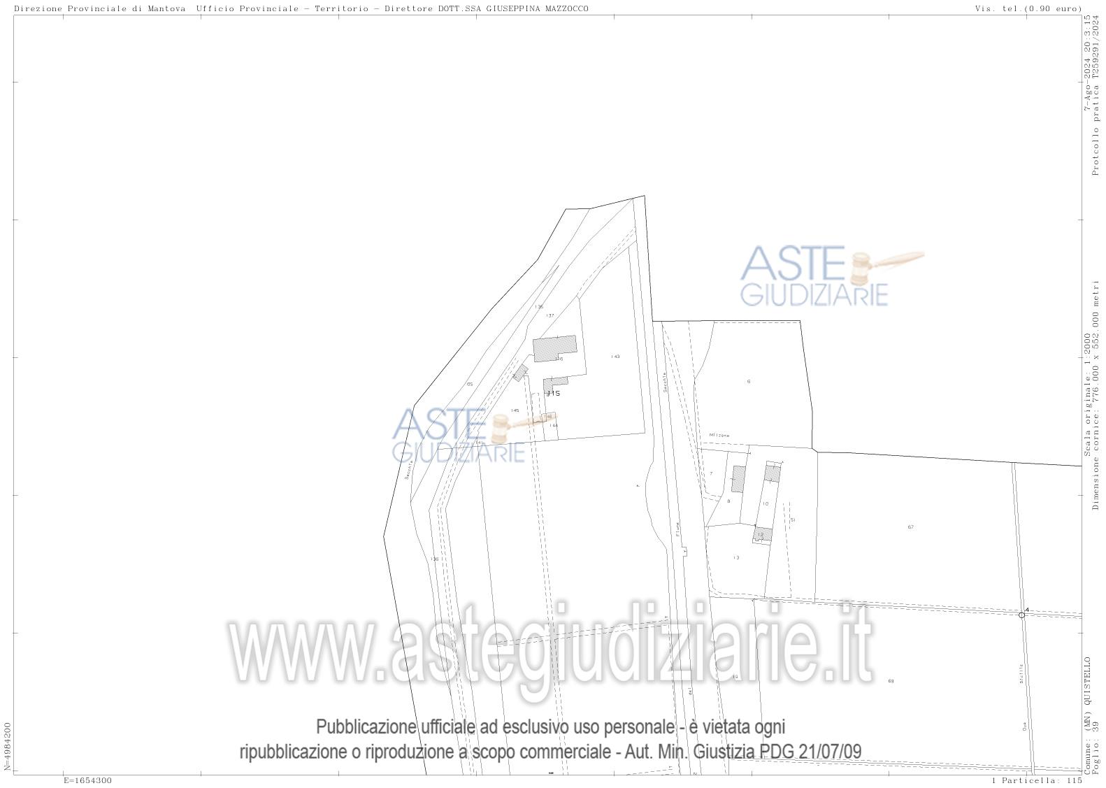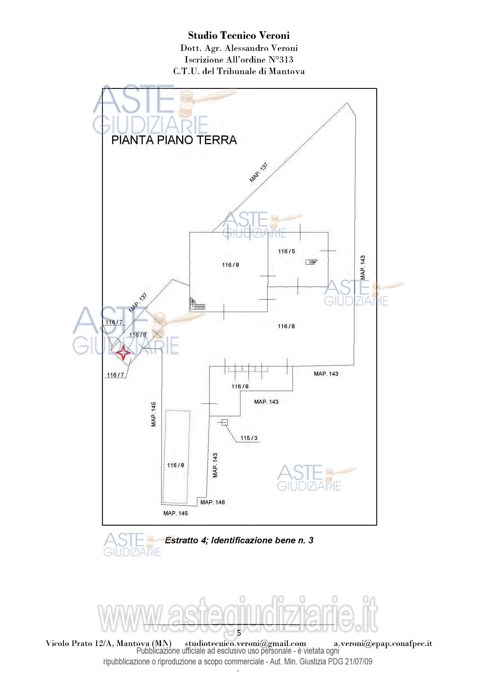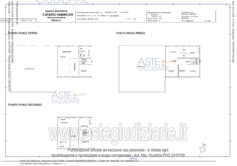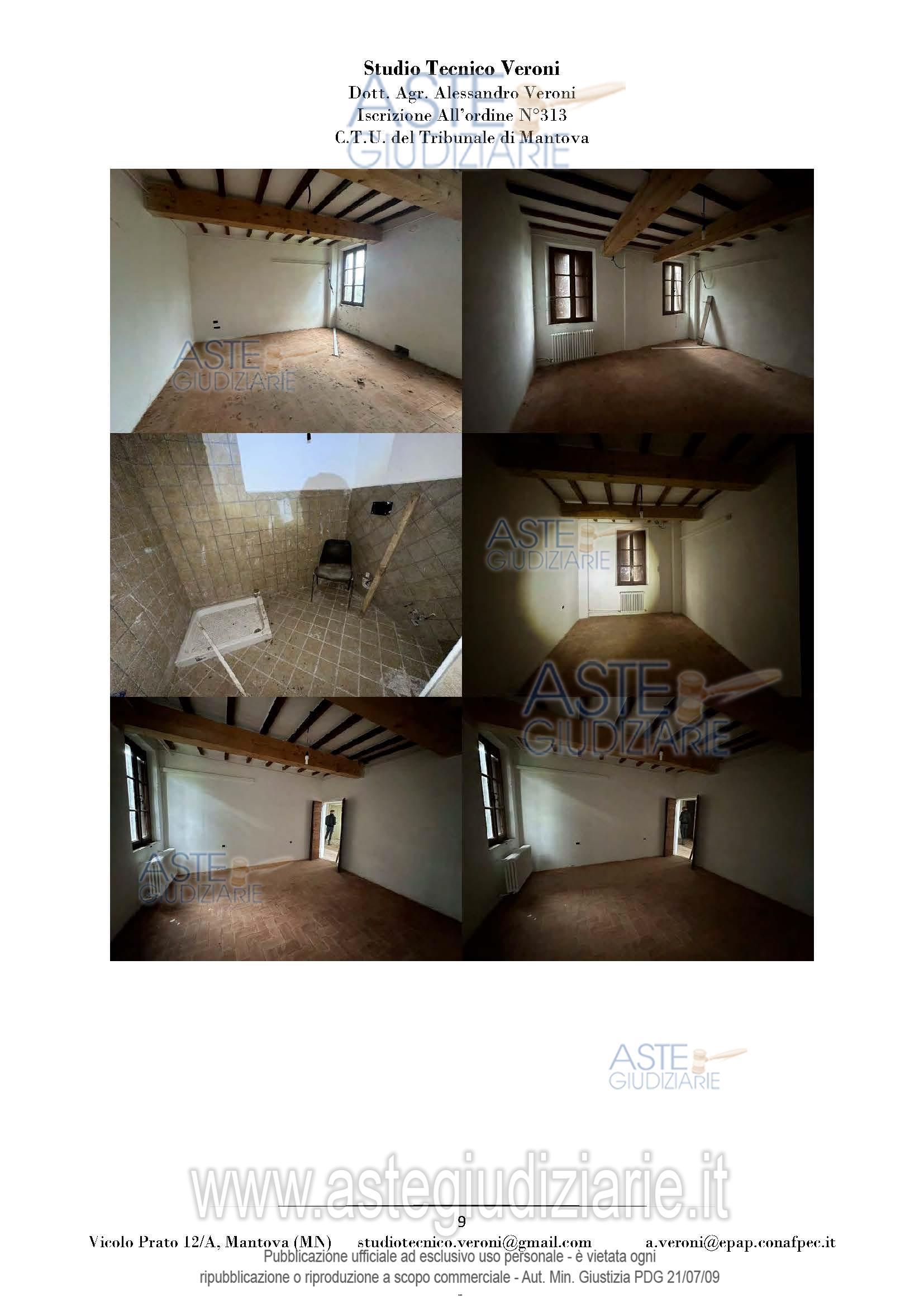 Vendita all'asta Senza incanto, con gara telematica sincrona mista - LOTTO UNICO: Piena proprietà di casa colonica dislocata su tre piani fuori terra nonché fabbricato rurale composto da cinque corpi di fabbrica, il tutto facente parte di un più amplio complesso agricolo, oltre a fabbricato rurale collabente e cinque terreni agricoli. Prezzo base € 93.713,00 (offerta minima € 70.285,00). Data vendita 01/04/2026 ore 14:30. Giudice Dott. Francesca Arrigoni. Professionista delegato alla vendita Not. Roberta Matera - Email "rmatera@notariato.it". Custode Giudiziario Sovemo Srl Istituto Vendite Giudiziarie Di Mantova - Email "immobiliaremantova@sovemo.com"; Tel. 0376220694. Rif. Tribunale di Mantova - Espropriazione immobiliare (cartabia) n. 152/2024