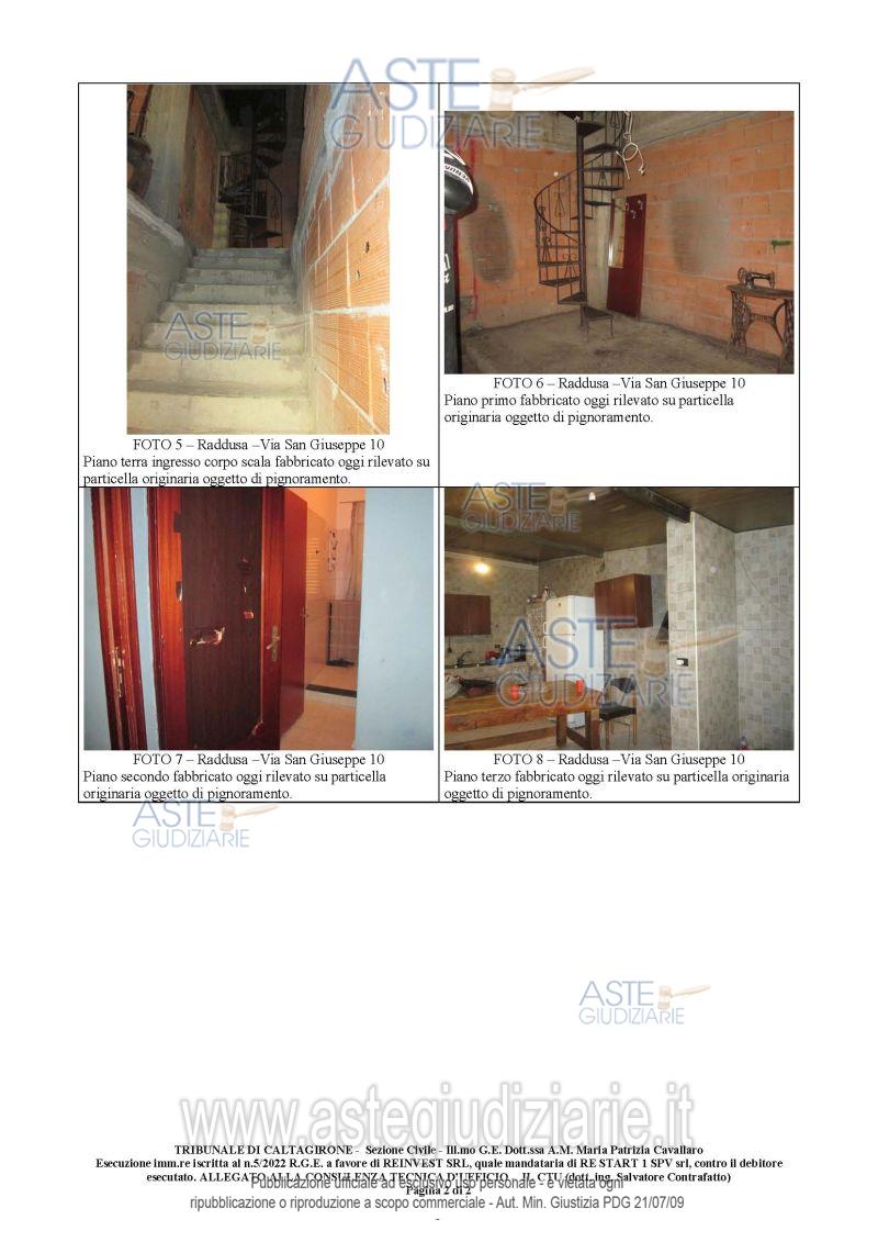Vendita in attesa dell'emissione del nuovo bando d'asta. LOTTO UNICO: Fabbricato per civile abitazione composto da piano terra adibito a garage e tre piani per uso abitazione. Ultimo prezzo base € 6.049,00 (offerta minima € 4.537,00). Professionista delegato alla vendita Avv. Mariagrazia Conti - Email "avv.mariagraziaconti@tiscali.it"; Cell. 3381132664; Tel. 093321513. Custode Giudiziario Avv. Mariagrazia Conti - Email "avv.mariagraziaconti@tiscali.it"; Cell. 3381132664; Tel. 093321513. Rif. Tribunale di Caltagirone - Esecuzione immobiliare post legge 80 n. 5/2022