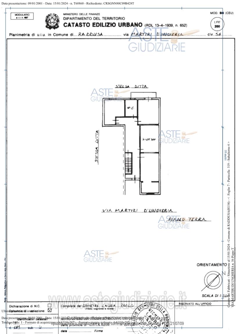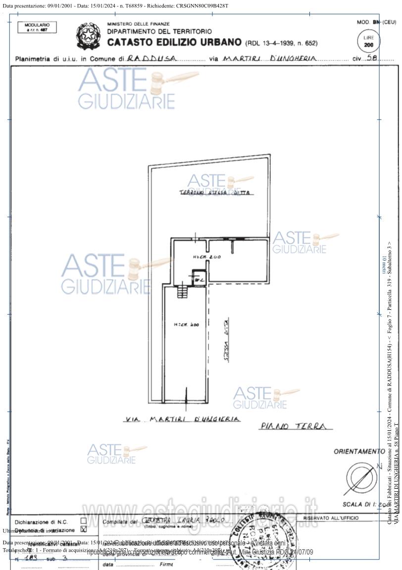 Vendita all'asta Senza incanto, con gara telematica sincrona mista - LOTTO UNICO: -Appartamento per civile abitazione in Raddusa, Via Martiri d’Ungheria 56, PT, al catasto fabbricati del Comune di Raddusa fg 7 part. 319 sub 4 (già precedentemente identificato come foglio 7, part. 189, sub 4), cat. A2, classe 2, vani 5, rendita € 374,43, Classe energetica F.-Autorimessa in Raddusa, Via Martiri d’Ungheria 58, PT, al catasto fabbricati del Comune di Raddusa fg 7 part. 319 sub 3 (già precedentemente identificata come foglio 7, part. 189, sub 3), cat. C6, classe 3,83 mq, rendita 150,03. Prezzo base € 34.031,25 (offerta minima € 25.523,43). Data vendita 23/04/2026 ore 18:00. Professionista delegato alla vendita Avv. Luigi Pulvirenti - Email "avv.luigipulvirenti@gmail.com"; Cell. 3803326024; Tel. 093356240. Custode Giudiziario Avv. Luigi Pulvirenti - Email "avv.luigipulvirenti@gmail.com"; Cell. 3803326024; Tel. 093356240. Rif. Tribunale di Caltagirone - Esecuzione immobiliare post legge 80 n. 61/2021