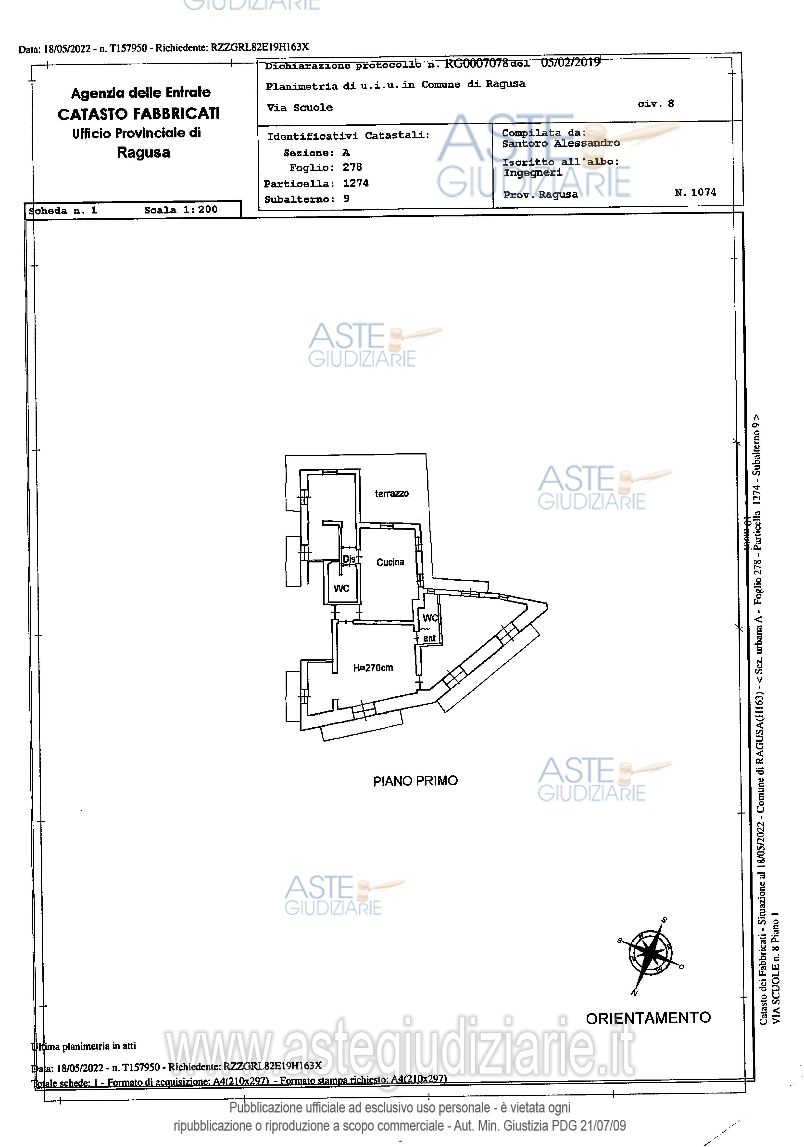 Vendita all'asta Senza incanto, con gara telematica sincrona mista - LOTTO 1: Diritti di piena proprietà di un immobile posto al primo piano di un fabbricato. Prezzo base € 43.510,00 (offerta minima € 36.632,50). Data vendita 31/03/2026 ore 16:30. Giudice Dott. Antonio Pianoforte. Professionista delegato alla vendita Avv. Stefano Adamo. Custode Giudiziario Avv. Stefano Adamo - Email "stefanoadamo@live.it"; Cell. 3335047710; Tel. 0932247588. Rif. Tribunale di Ragusa - Esecuzione immobiliare post legge 80 n. 21/2022