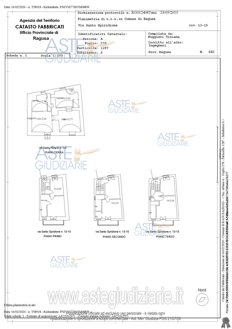 Vendita all'asta Senza incanto, con gara telematica sincrona mista - LOTTO 1: Abitazione in Ragusa via Santo Spiridione nn.13-15, via Sant’Alberto nn.3-5, al piano T, 1°, 2°e 3°, con ingresso al piano T da via Sant’Alberto 5, e ai piani primo, secondo e terzo da Santo Spiridione 15. Superficie coperta lorda complessiva pari a 206,6 mq e 10,25 mq di aree scoperte (balconi). L'immobile presenta irregolarità urbanistico-catastali sanabili del cui costo si è tenuto conto nella determinazione della perizia di stima. Prezzo base € 58.645,00 (offerta minima € 43.984,00). Data vendita 29/01/2026 ore 16:00. Giudice Francesco Rio. Professionista delegato alla vendita Avv. Marta Castagnetta - Email "martacast@live.it"; Cell. 3331875820. Custode Giudiziario Avv. Marta Castagnetta - Email "martacast@live.it"; Cell. 3331875820. Rif. Tribunale di Ragusa - Espropriazione immobiliare (cartabia) n. 14/2024