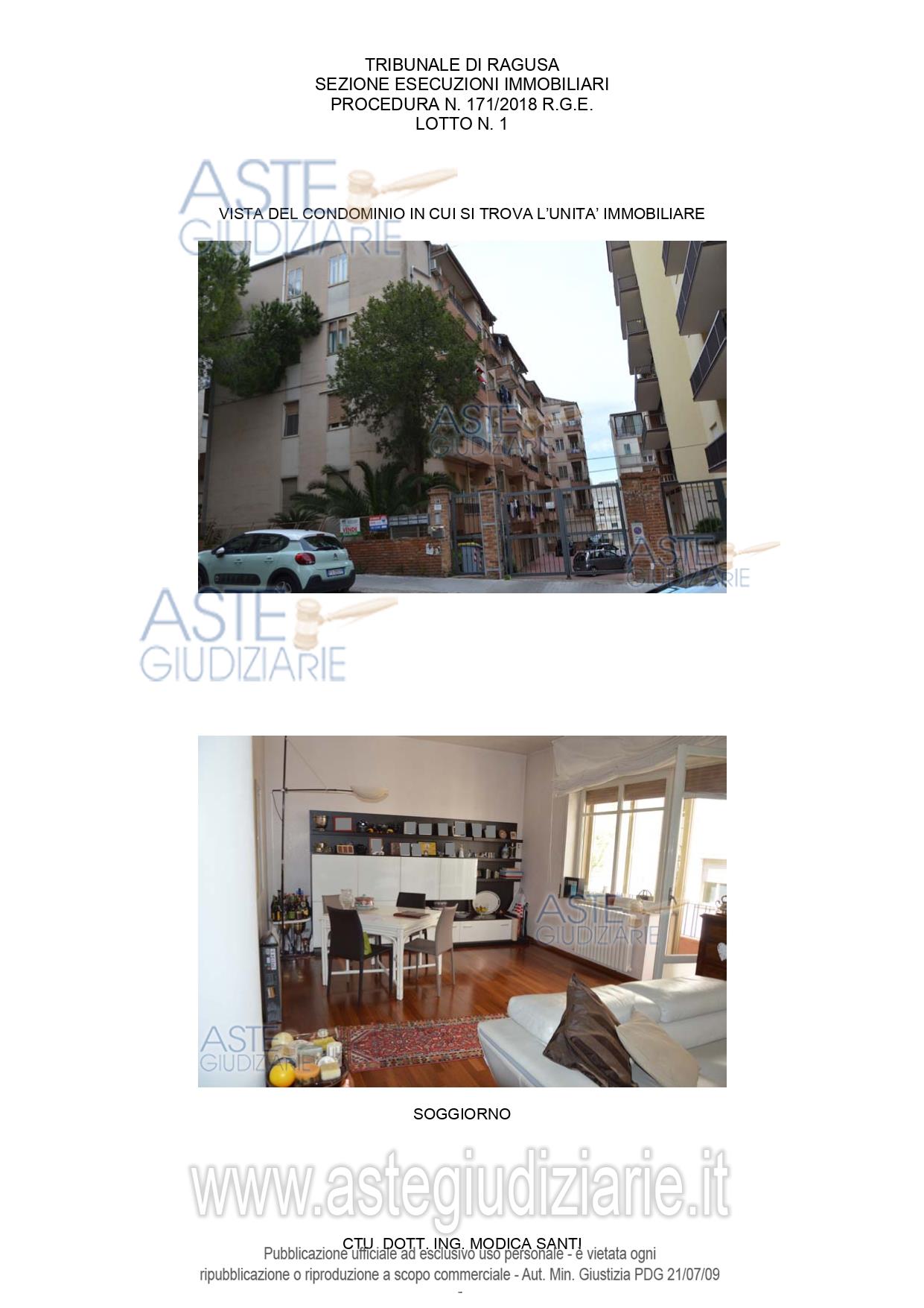 Vendita all'asta Senza incanto, con gara telematica sincrona mista - LOTTO 1: Appartamento per civile abitazione, Scala A, Interno 5, P.3° . Prezzo base € 49.528,13 (offerta minima € 37.146,10). Data vendita 06/02/2026 ore 16:30. Giudice Carlo Di Cataldo. Professionista delegato alla vendita Avv. Gianluca Zaccaria - Email "avv.zaccariagianluca@gmail.com". Custode Giudiziario Avv. Gianluca Zaccaria - Email "avv.zaccariagianluca@gmail.com"; Tel. 3394795957. Rif. Tribunale di Ragusa - Esecuzione immobiliare post legge 80 n. 171/2018