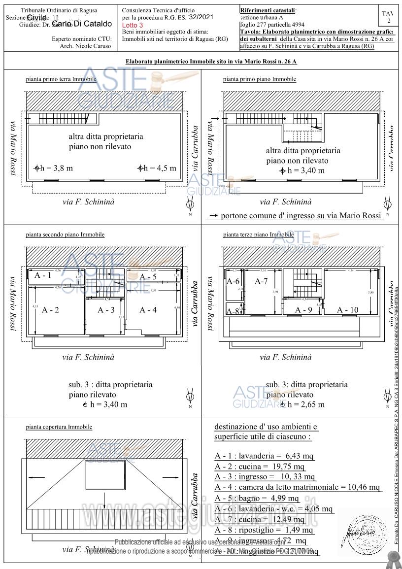Vendita all'asta Senza incanto, con gara telematica sincrona mista - LOTTO 3: Abitazione di tipo popolare su più livelli ubicata a Ragusa - via Mario Rossi n.26/B (catastalmente A), piano 2 e 3. Prezzo base € 57.375,00 (offerta minima € 43.031,25). Data vendita 15/05/2026 ore 17:00. Professionista delegato alla vendita Avv. Lidia Calcaterra - Email "lidiacalcaterra@virgilio.it"; Cell. 3475334264; Tel. 0932 621358. Rif. Tribunale di Ragusa - Contenzioso civile n. 32/2021