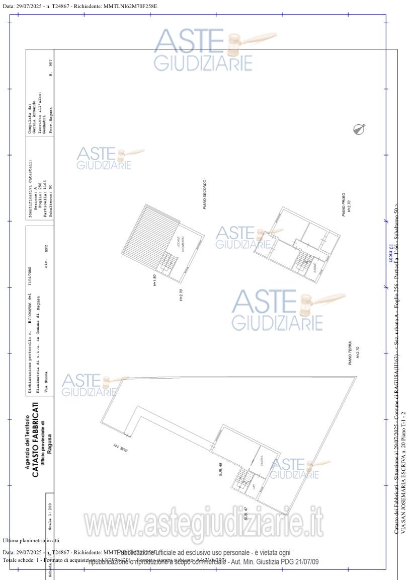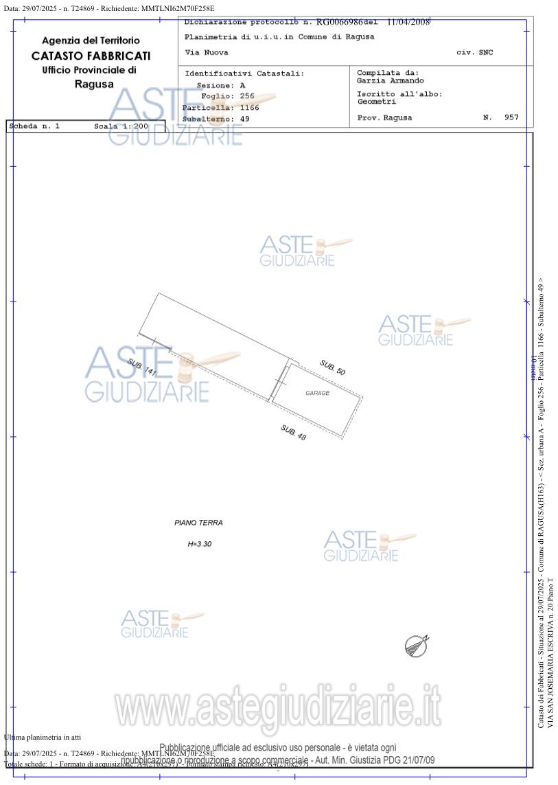 Vendita all'asta Senza incanto, con gara telematica sincrona mista - LOTTO 1: Piena proprietà di alloggio unifamiliare al piano terra e primo sito in Marina di Ragusa, Via Jose Maria Escrivà n.20. Il compendio pignorato risulta censito al catasto dei fabbricati del Comune di Ragusa:-Appartamento, sez. urbana A, foglio 256, particella 1166 sub 50, Zona Cens.1 classe 1, Categ. A/7, Consistenza 7 vani, Superfice catastale mq. 165, Rendita euro 650,74;- Garage, sez. urbana A, foglio 256, particella 1166 sub 49, Zona Cens.1 classe 4, Categ. C/6, Consistenza mq.18,00, Rendita euro 61,36. Prezzo base € 233.750,00 (offerta minima € 175.312,50). Data vendita 06/05/2026 ore 17:00. Giudice Dott. Antonio Pianoforte. Professionista delegato alla vendita Dott. Francesca Mazzola - Email "studiofrancescamazzola@gmail.com". Custode Giudiziario Dott. Francesca Mazzola - Email "studiofrancescamazzola@gmail.com". Rif. Tribunale di Ragusa - Espropriazione immobiliare (cartabia) n. 93/2025