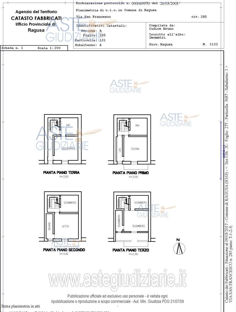 Vendita all'asta Senza incanto, con gara telematica sincrona mista - LOTTO UNICO: Unità immobiliare composta da quattro elevazioni fuori terra. Prezzo base € 18.237,00 (offerta minima € 13.678,00). Data vendita 16/03/2026 ore 10:00. Professionista delegato alla vendita Avv. Corinne Giuliani - Email "avv.corinnegiuliani@gmail.com"; Tel. 0932624755. Custode Giudiziario Avv. Corinne Giuliani - Email "avv.corinnegiuliani@gmail.com"; Tel. 0932624755. Rif. Tribunale di Ragusa - Esecuzione immobiliare post legge 80 n. 297/2016