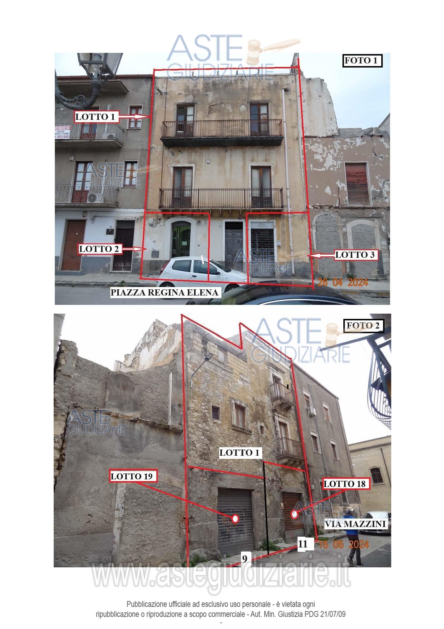 Vendita all'asta Senza incanto, con gara telematica sincrona mista - LOTTO 1: Piena proprietà di una vetusta palazzina posta ai piani terra, primo, secondo e terrazzo al piano terzo, per una superficie complessiva utile di mq.180 oltre aree scoperte. Prezzo base € 41.497,04 (offerta minima € 31.122,78). Data vendita 04/12/2025 ore 16:00. Giudice Dott. A. M. Patrizia Cavallaro. Professionista delegato alla vendita Avv. Luca Failla - Email "lufailla@tiscali.it". Custode Giudiziario Avv. Luca Failla - Email "lufailla@tiscali.it". Rif. Tribunale di Caltagirone - Esecuzione immobiliare post legge 80 n. 47/2023