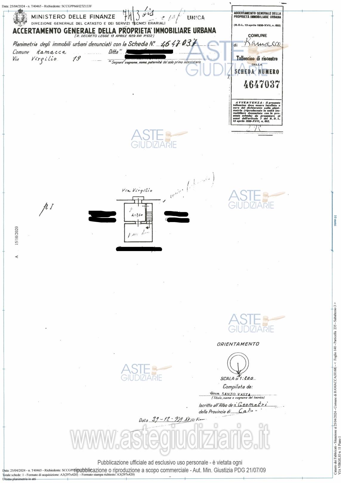 Vendita in attesa dell'emissione del nuovo bando d'asta. LOTTO 4: Piena proprietà di un piccolo appartamento a piano primo composto da due piccoli vani, un servizio igienico e un ripostiglio per complessivi mq.24,40. Ultimo prezzo base € 6.910,43 (offerta minima € 5.182,82). Giudice Dott. A. M. Patrizia Cavallaro. Professionista delegato alla vendita Avv. Luca Failla - Email "lufailla@tiscali.it". Custode Giudiziario Avv. Luca Failla - Email "lufailla@tiscali.it". Rif. Tribunale di Caltagirone - Esecuzione immobiliare post legge 80 n. 47/2023