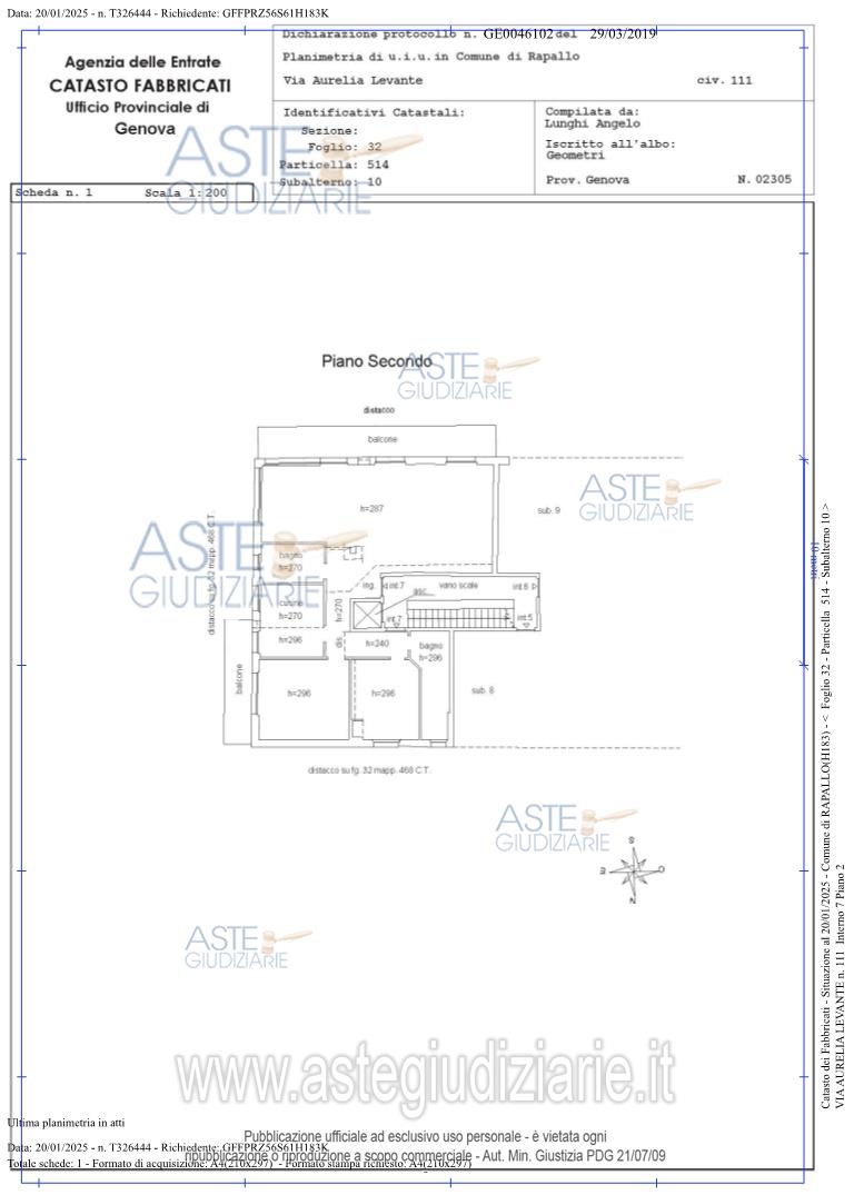 Vendita all'asta Senza incanto, con gara telematica sincrona mista - LOTTO UNICO: DIRITTO di USUFRUTTO VITALIZIO, in Comune di Rapallo (GE), Via Aurelia Levante di:a) appartamento, facente parte del Condominio di Via Aurelia Levante, civico 111, posto al piano secondo, distinto con il numero interno 7, composto da: doppio ingresso, cucina indipendente, grande soggiorno, 2 camere, 2 bagni e n. 2 balconi;b) garage, ubicato al piano terra del condominio di via Aurelia Levante n. 111, civico 117, posto al piano terra, contraddistinto con il numero 10. Prezzo base € 266.512,34 (offerta minima € 199.884,26). Data vendita 20/11/2025 ore 15:00. Giudice Roberto Braccialini. Professionista delegato alla vendita Avv. Davide Tonnicchi - Email "davide.tonnicchi@sla-ap.it"; Tel. 010541263. Custode Giudiziario Dott. Sovemo Srl - Email "immobiliare@sovemo.com"; Tel. 0105299253. Rif. Tribunale di Genova - Espropriazione immobiliare (cartabia) n. 507/2024