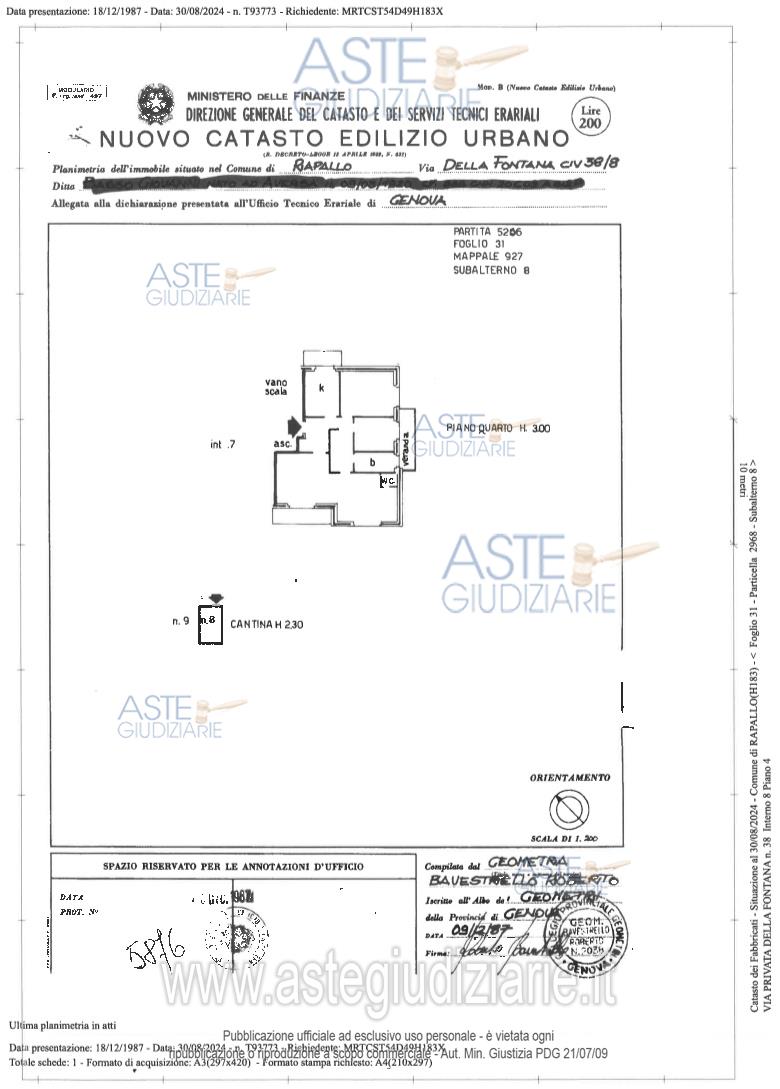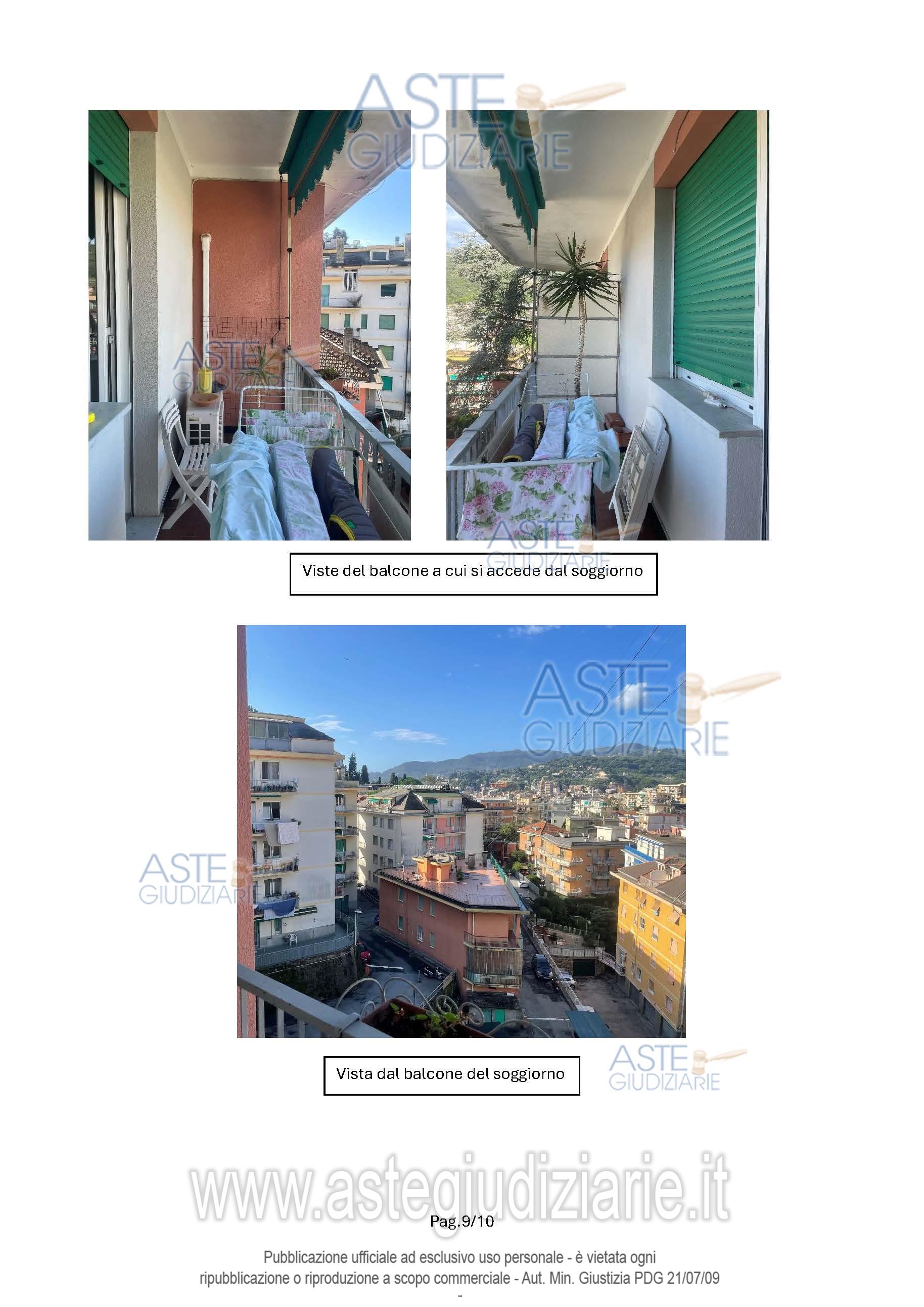 Vendita all'asta Senza incanto, con gara telematica sincrona mista - LOTTO UNICO: Appartamento sito in Rapallo (GE) - Via Privata della Fontana 38, interno 8, posto al quarto piano di un edificio condominiale di sei piani composto da ingresso, cucina, doppio soggiorno, disimpegno zona notte, camera da letto matrimoniale, camera da letto singola, bagno e piccolo w.c, con due piccoli balconi a servizio della cucina e del soggiorno ed un terzo balcone trasformato in veranda con serramenti vetrati. Come dotazione accessoria vi è una piccola cantina al piano terra. Metri quadri 113,00. Prezzo base € 145.000,00 (offerta minima € 108.750,00). Data vendita 13/02/2026 ore 14:30. Giudice Tommaso Sdogati. Professionista delegato alla vendita Dott. Sebastiano Rezzano - Email "srezzano@studiorezzano.it"; Cell. 3664312477; Tel. 0185311805. Custode Giudiziario Dott. Sovemo - Email "visitegenova@sovemo.com"; Tel. 0105299253. Rif. Tribunale di Genova - Espropriazione immobiliare (cartabia) n. 342/2024