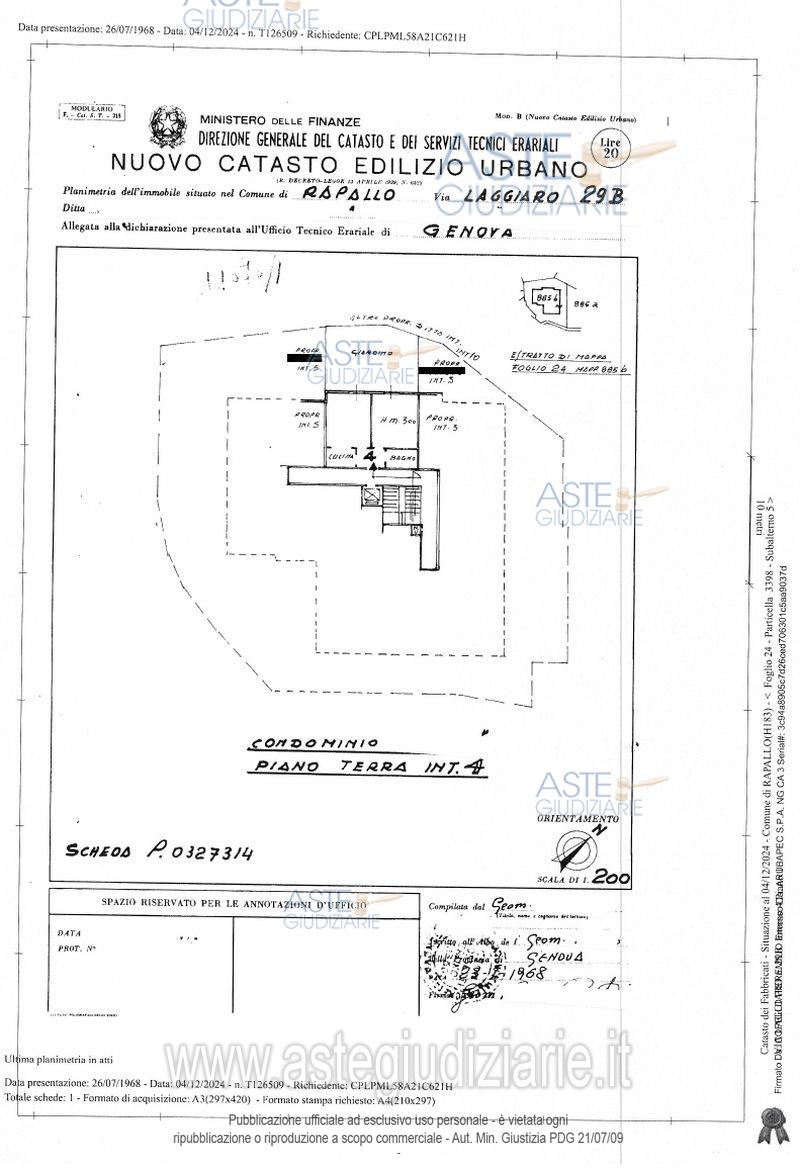 Vendita all'asta Senza incanto, con gara telematica sincrona mista - LOTTO UNICO: Rapallo (GE): piena proprietà per la quota di 1/1 di un appartamento di civile abitazione posto al piano primo di un edificio elevato su sette livelli dotato di ascensore. L’appartamento è composto da: ingresso-disimpegno, un soggiorno con zona cottura, una camera da letto, un bagno completo di sanitari e dotato di aereazione forzata e una terrazza a livello. Prezzo base € 68.646,57 (offerta minima € 51.484,93). Data vendita 18/03/2026 ore 14:00. Professionista delegato alla vendita Dott. Laura Benedettini - Email "laura.benedettini@borzianiodone.it"; Tel. 0108979235. Custode Giudiziario Dott. Sovemo S.R.L. - Email "immobiliare@sovemo.com"; Tel. 0105299253. Rif. Tribunale di Genova - Espropriazione immobiliare (cartabia) n. 349/2024
