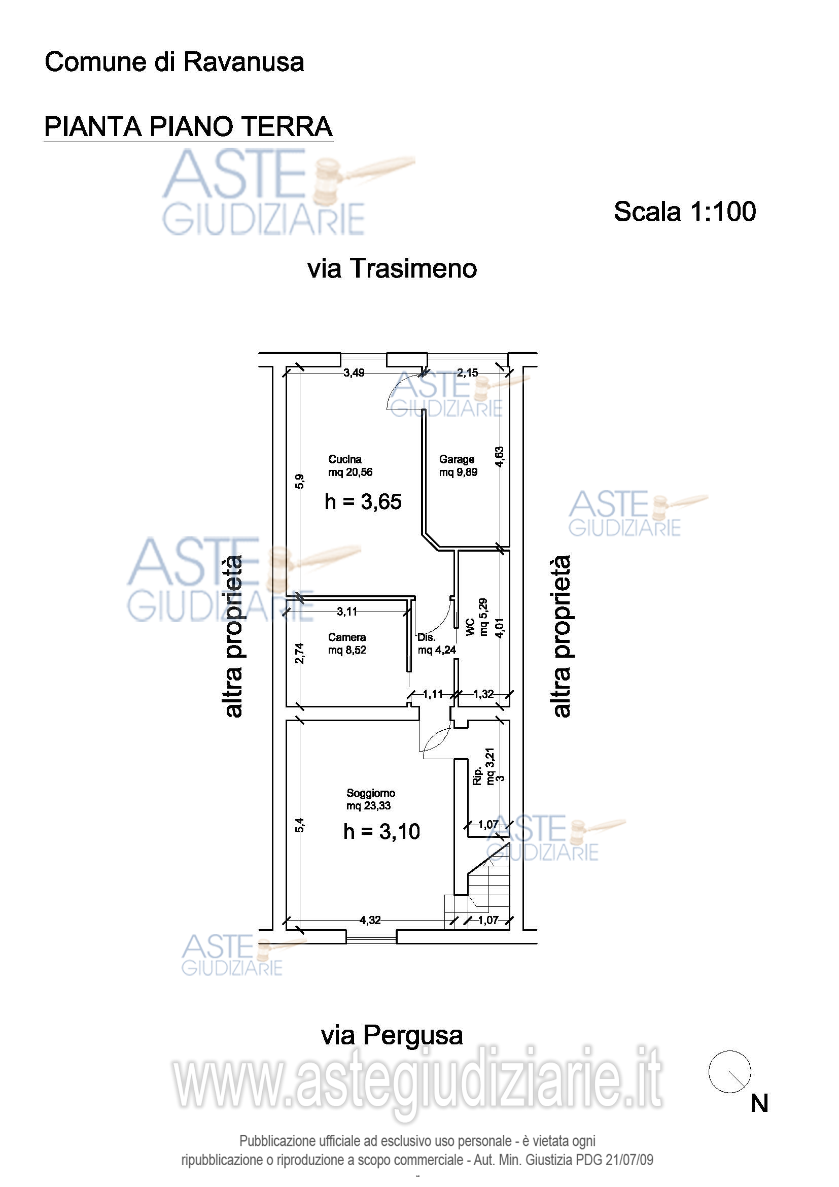 Vendita all'asta Senza incanto, con gara telematica sincrona mista - LOTTO UNICO: Unità immobiliare sita in Ravanusa con accesso dalla Via Pergusa n° 11 e dalla Via Trasimeno n° 8, composta da piano terra, primo e secondo (sottotetto), con garage di pertinenza, della superficie commerciale complessiva di mq 212.36 circa. NCEU Foglio 49 particella 300, sub 3 e 4. Vi è concessione edilizia in sanatoria n. 1339 del 26/02/2009. Maggiori dettagli in CTU. Occupato dal debitore. Prezzo base € 48.515,62 (offerta minima € 36.386,71). Data vendita 27/05/2026 ore 16:00. Giudice Laura Torregrossa. Professionista delegato alla vendita Avv. Calogero Orlando - Email "avv.lillorlando@virgilio.it". Custode Giudiziario Avv. Calogero Orlando - Email "avv.lillorlando@virgilio.it". Rif. Tribunale di Agrigento - Esecuzione immobiliare post legge 80 n. 63/2023