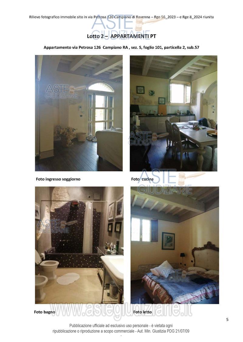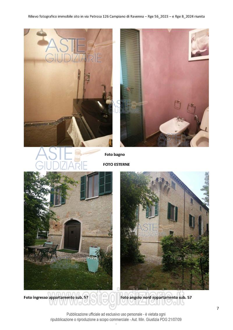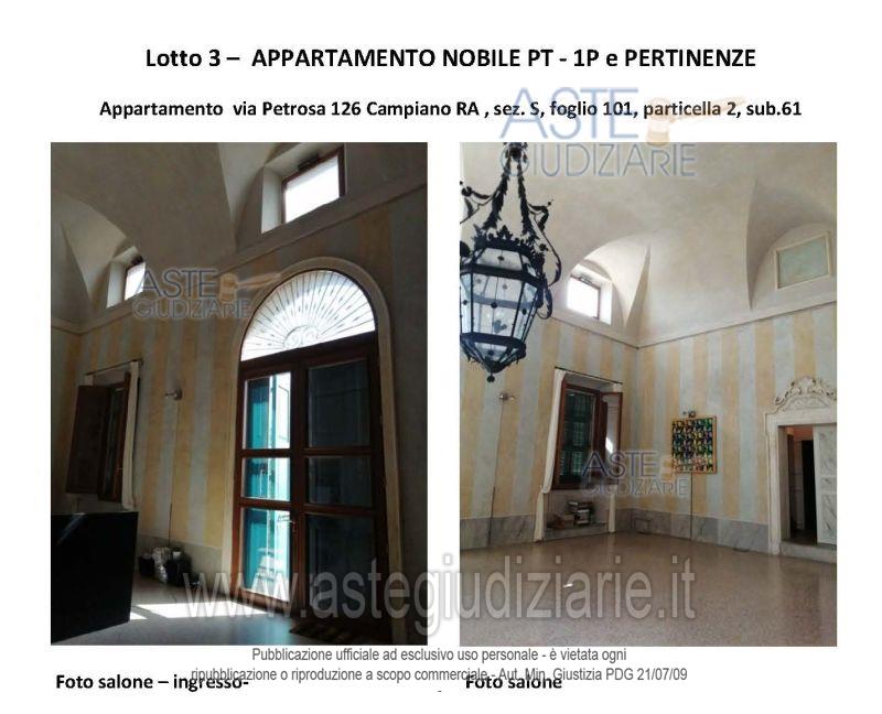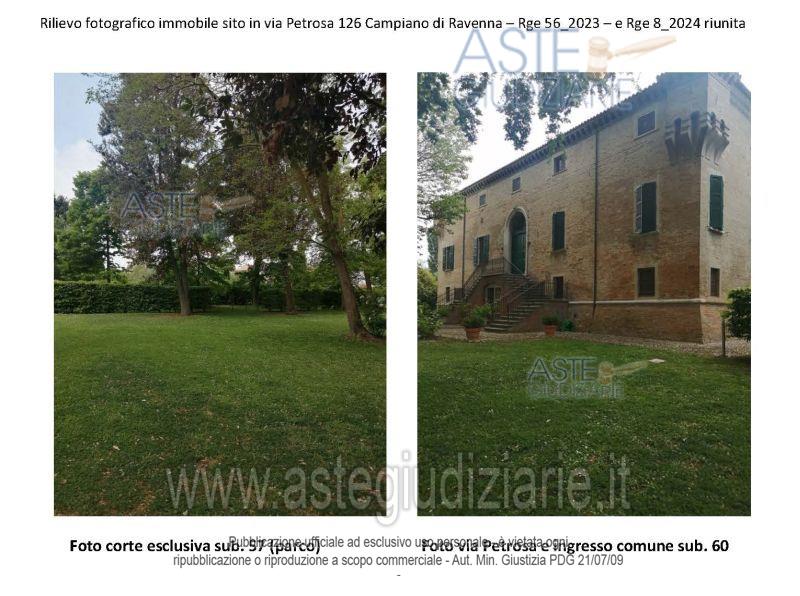 Vendita all'asta Senza incanto, con gara telematica asincrona - LOTTO 2: Porzione del complesso immobiliare denominato "Villa Ginanni Corradini" sviluppato su tre piani fuori terra all'interno di un parco di Ha 1.00.24, sito in Comune di Ravenna, frazione Campiano, Via Petrosa n. 126, costituita da appartamento al piano terra con carte esclusiva, comunicante con appartamento ad esso adiacente. Prezzo base € 103.500,00 (offerta minima € 77.625,00). Data inizio operazioni di vendita: 16/12/2025 ore 10:20. Giudice Dott. Samuele Labanca. Professionista delegato alla vendita Not. Paolo Castellari. Custode Giudiziario Not. Paolo Castellari - Email "astenotai@associazionenotai.it"; Cell. 3779415717; Tel. 0544219977. Rif. Tribunale di Ravenna - Esecuzione immobiliare post legge 80 n. 56/2023