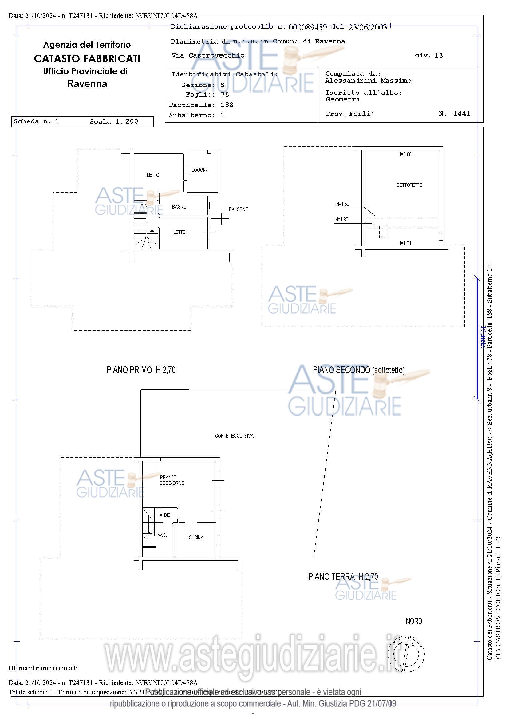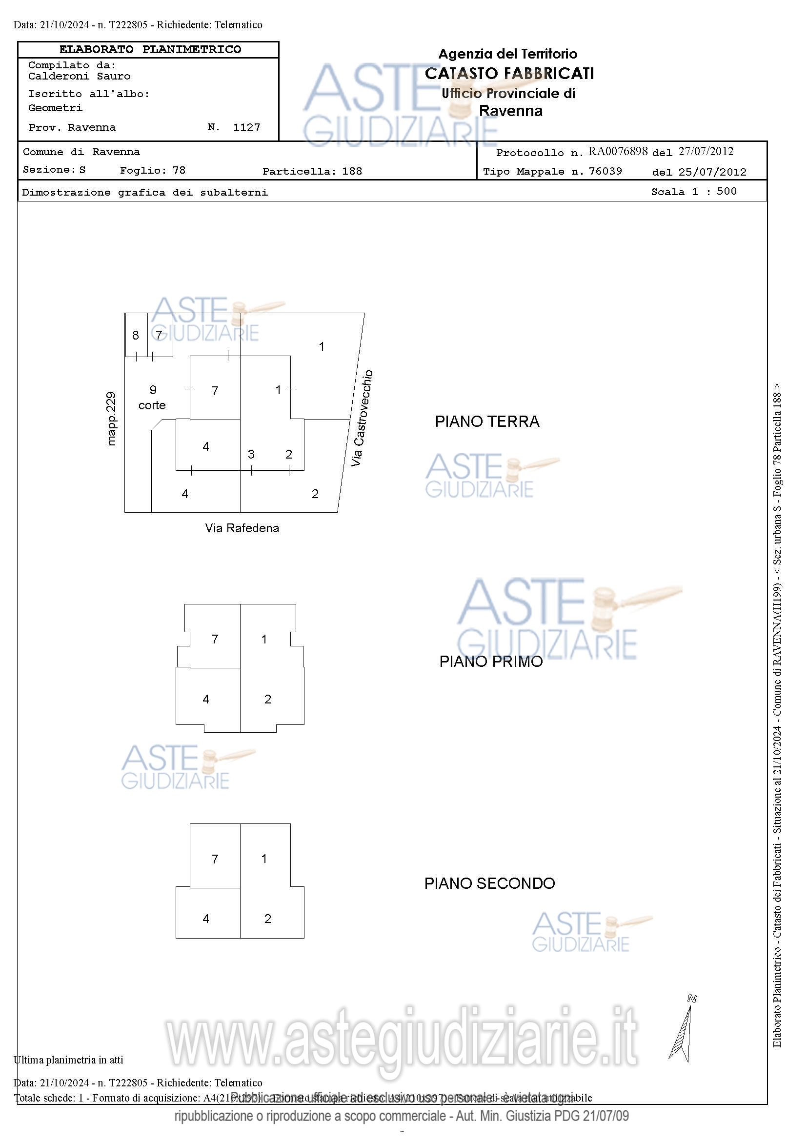 Vendita all'asta Senza incanto, con gara telematica asincrona - LOTTO UNICO: Villetta di civile abitazione sviluppata su tre piani fuori terra (terra-primo e secondo-sottotetto) con corte accessoria e pertinenziale in proprietà esclusiva, facente parte di un fabbricato plurifamiliare composto da quattro unità abitative. Superficie totale di ca mq 114,00. Libero. Prezzo base € 215.200,00 (offerta minima € 161.400,00). Data inizio operazioni di vendita: 25/11/2025 ore 09:00. Giudice Samuele Labanca. Professionista delegato alla vendita Not. Fabrizio Gradassi - Email "astenotai@associazionenotai.it"; Tel. 0544219977. Custode Giudiziario Not. Fabrizio Gradassi - Email "astenotai@associazionenotai.it"; Tel. 0544219977. Rif. Tribunale di Ravenna - Espropriazione immobiliare (cartabia) n. 92/2024