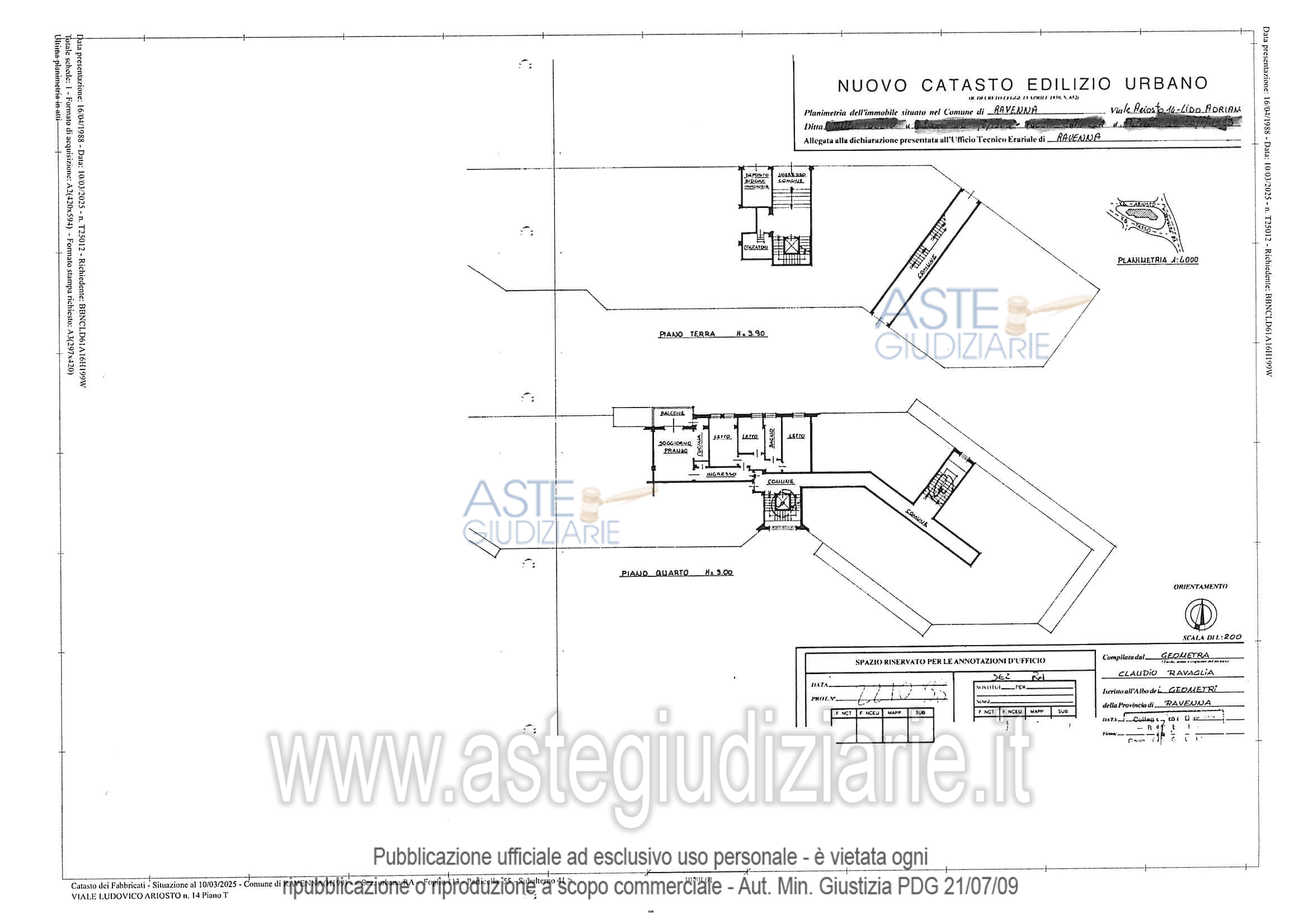 Vendita all'asta Senza incanto, con gara telematica asincrona - LOTTO UNICO: Appartamento posto al terzo piano di un fabbricato condominiale denominato “Adriano” . Prezzo base € 120.000,00 (offerta minima € 90.000,00). Data inizio operazioni di vendita: 17/12/2025 ore 09:30. Giudice Paolo Gilotta. Professionista delegato alla vendita Dott. Claudia Cecco. Custode Giudiziario Dott. Claudia Cecco - Email "cecco@studiocecco.it"; Tel. 0544406420. Rif. Tribunale di Ravenna - Esecuzione immobiliare post legge 80 n. 155/2024