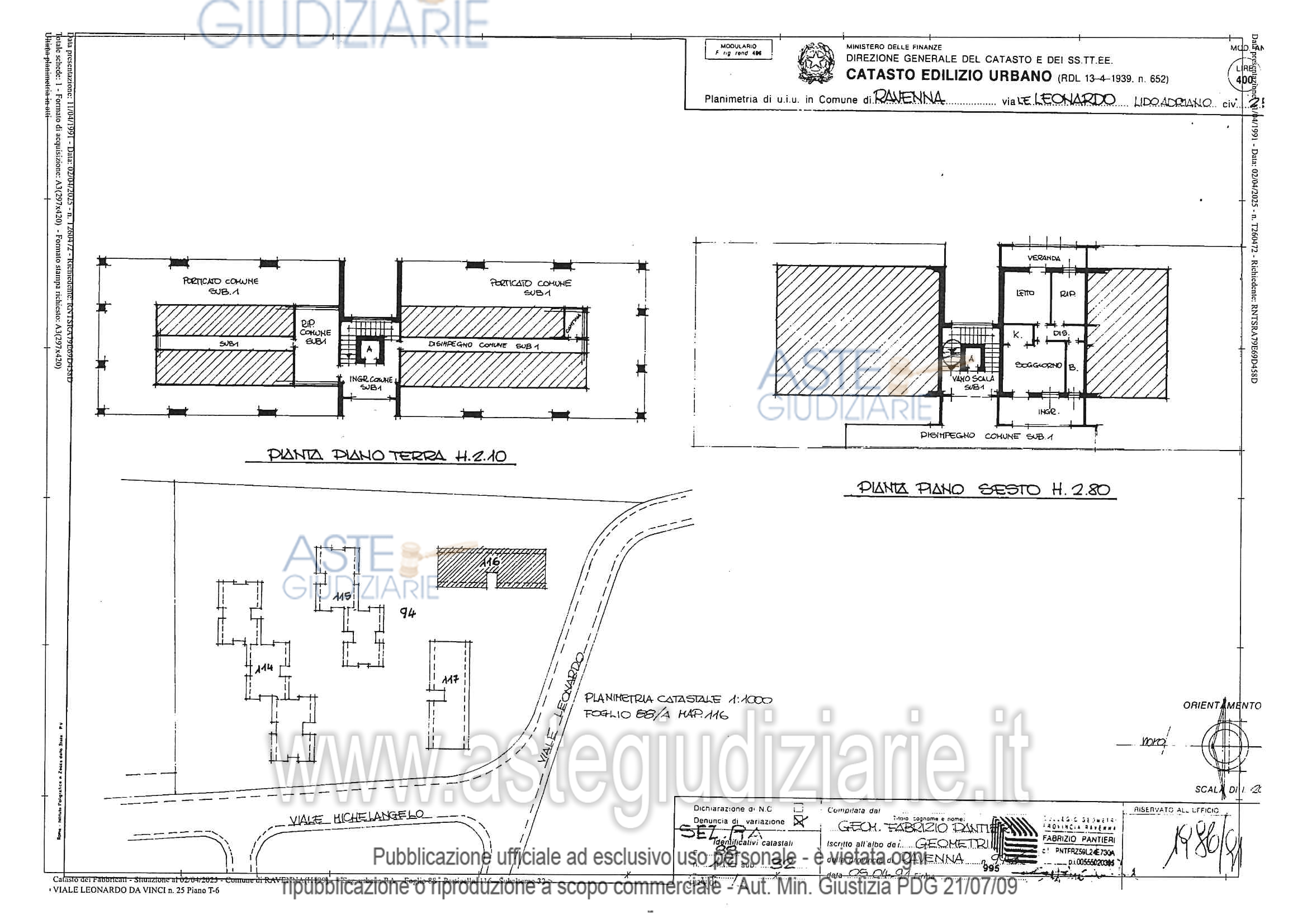 Vendita all'asta Senza incanto, con gara telematica asincrona - LOTTO 1: Unità abitativa al sesto piano con ascensore con due cantine al piano terra oltre alla servitù prediale di godimento esclusivo , perpetuo e gratuito di 2 posti auto . Prezzo base € 315.000,00 (offerta minima € 236.250,00). Data inizio operazioni di vendita: 17/02/2026 ore 09:30. Giudice Paolo Gilotta. Professionista delegato alla vendita Avv. Liliana D'agostino. Custode Giudiziario Avv. Liliana D'agostino - Email "ape.esecuzioni@libero.it". Rif. Tribunale di Ravenna - Espropriazione immobiliare (cartabia) n. 17/2025